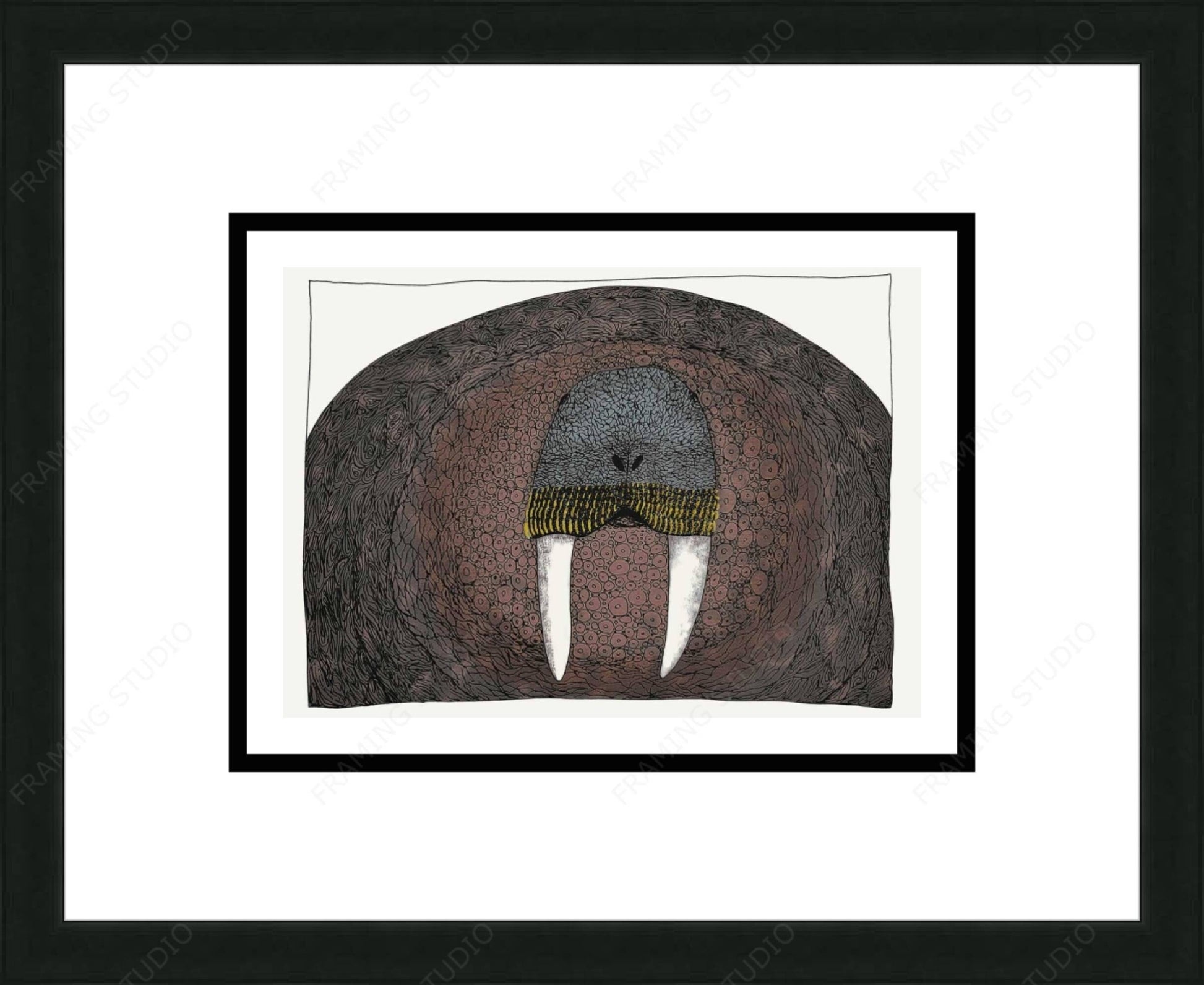 Imposing Walrus, 2009 by Ningiukulu Teevee, Indigenous Inuit Art Card, Aboriginal Decor, Framed Art Card