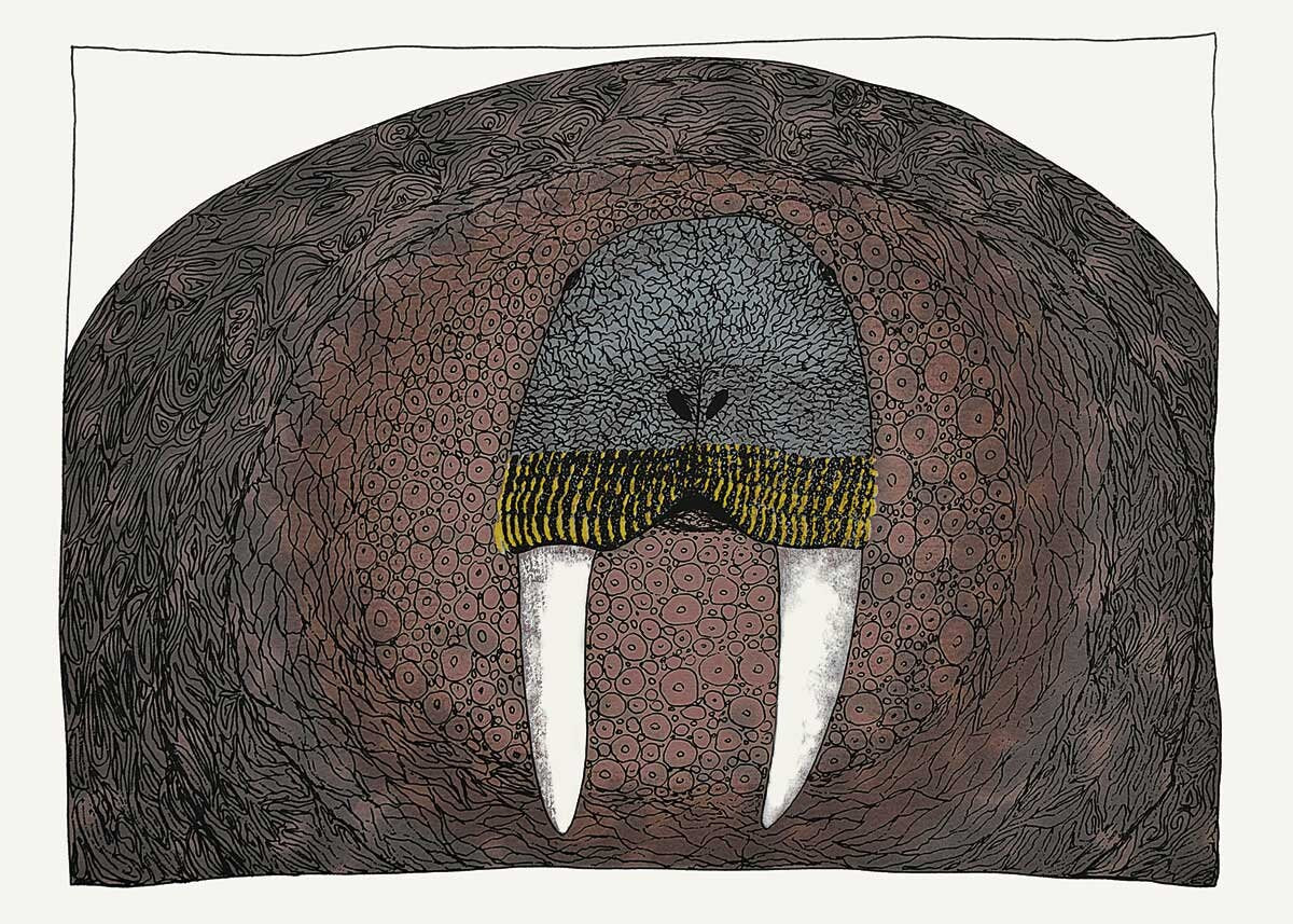 “A couple of years ago I made Shaman Revealed, a drawing that was based on the Kiviuq legend of a woman turning into a fox. I wanted to show how people could change from one thing to another but still be the same person. A zipper came to mind and I thought, that’s a really nice idea, so I used the zipper to show how they change.”