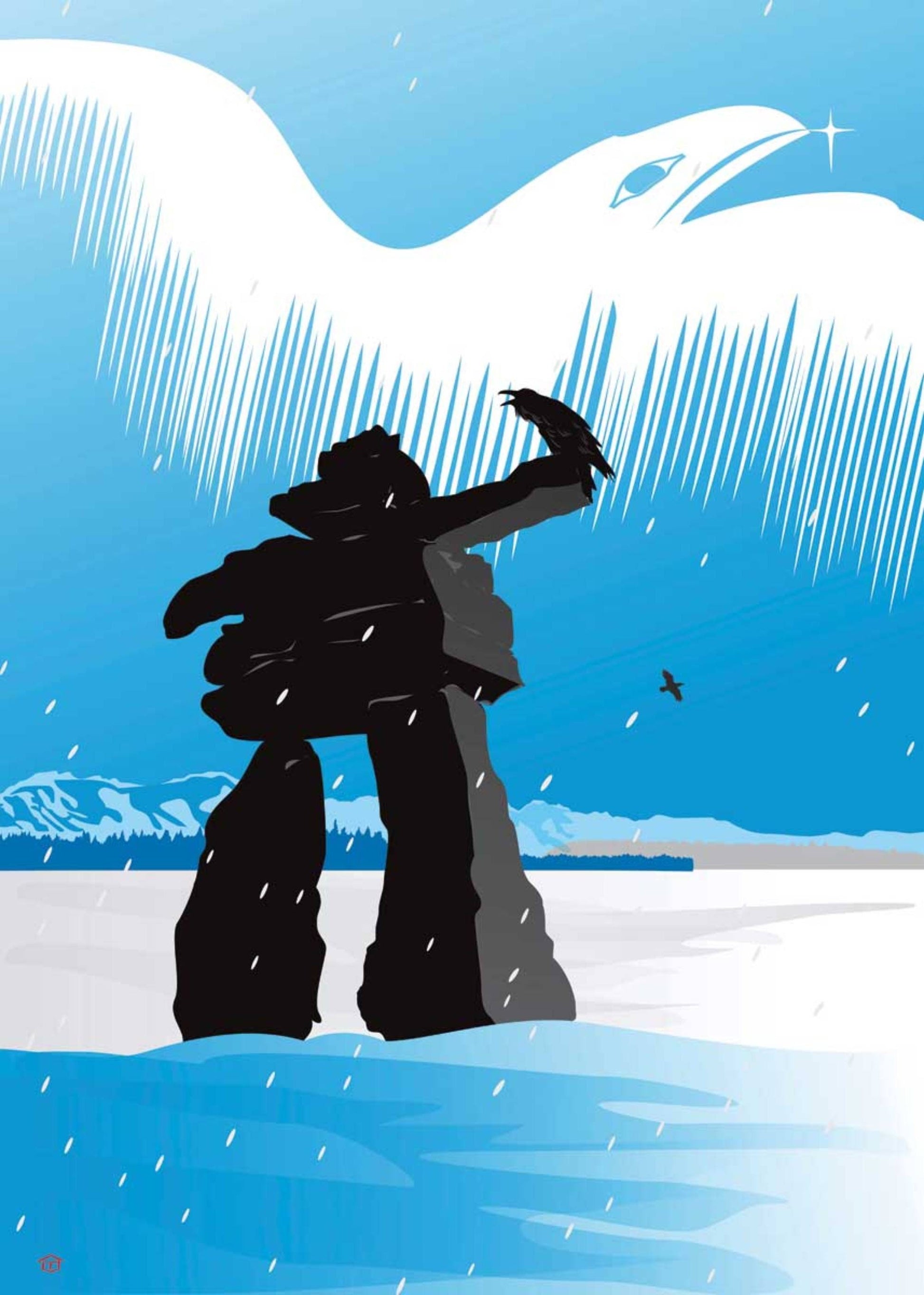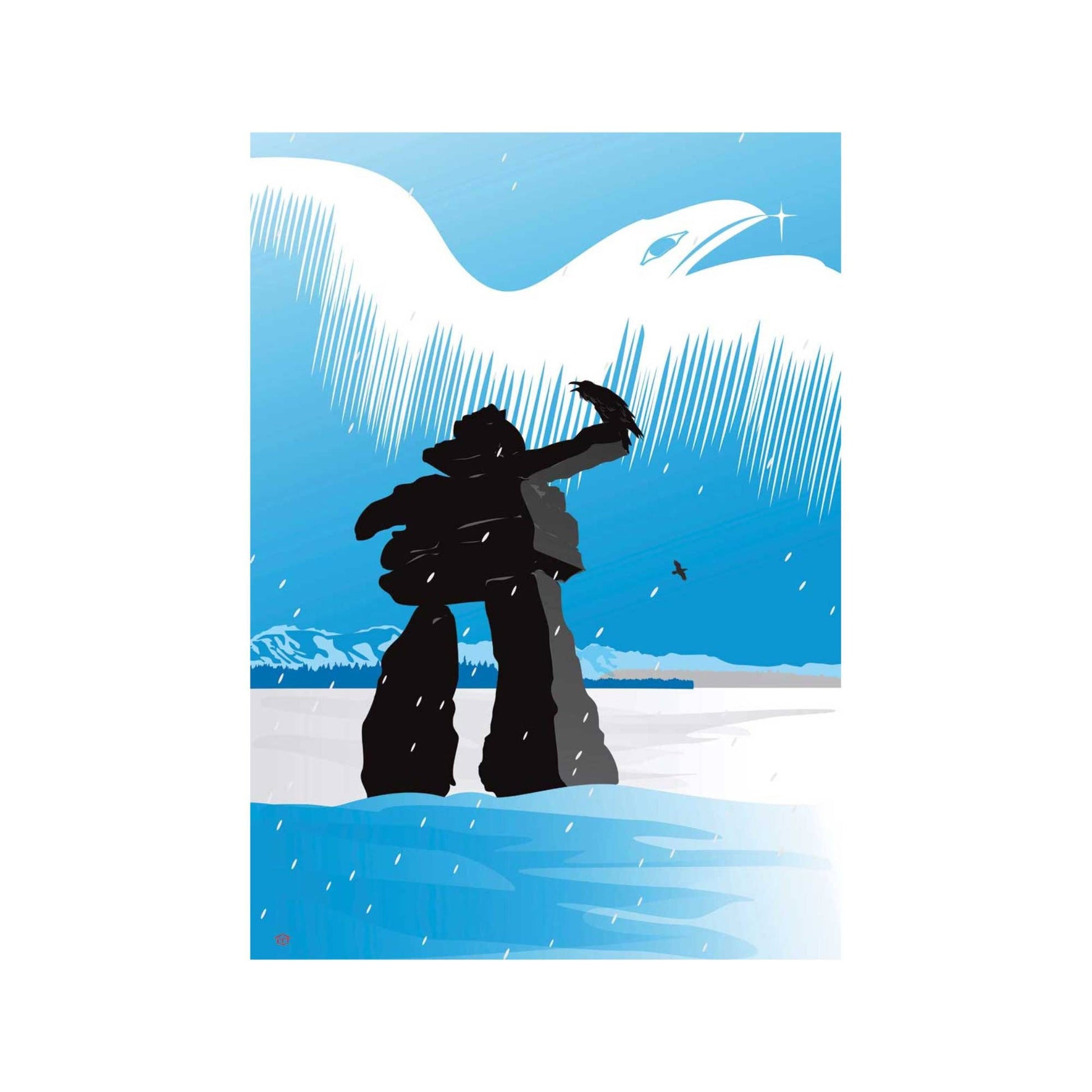 Inukshuk Winter By Mark Preston, Indigenous Art Print, First Nations, Native Americans, Tlingit, Yukon Territory, Framed Art