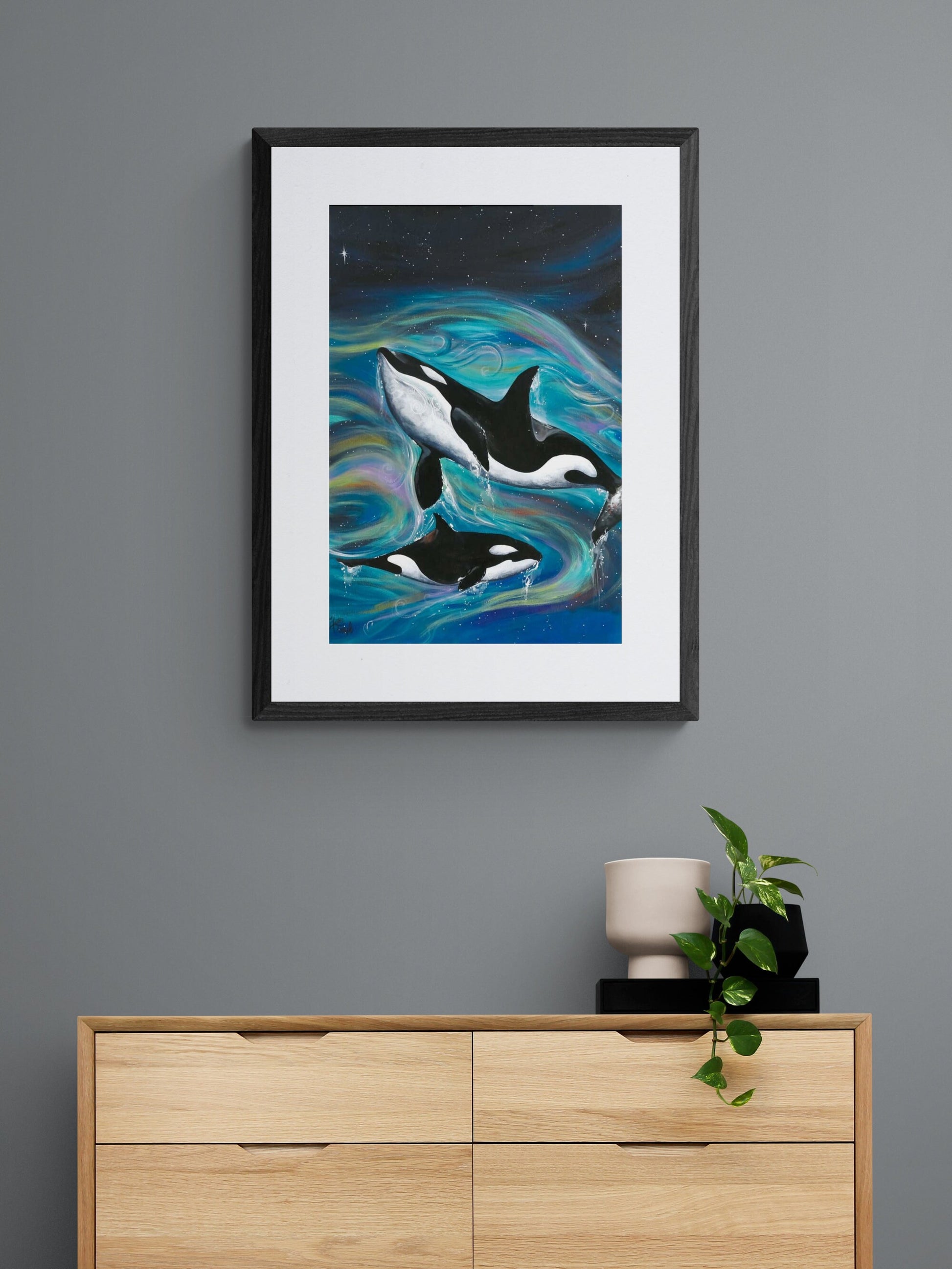 Killer Whales By Carla Joseph, Indigenous Art Print, First Nations, Native Americans, Cree, Framed Art