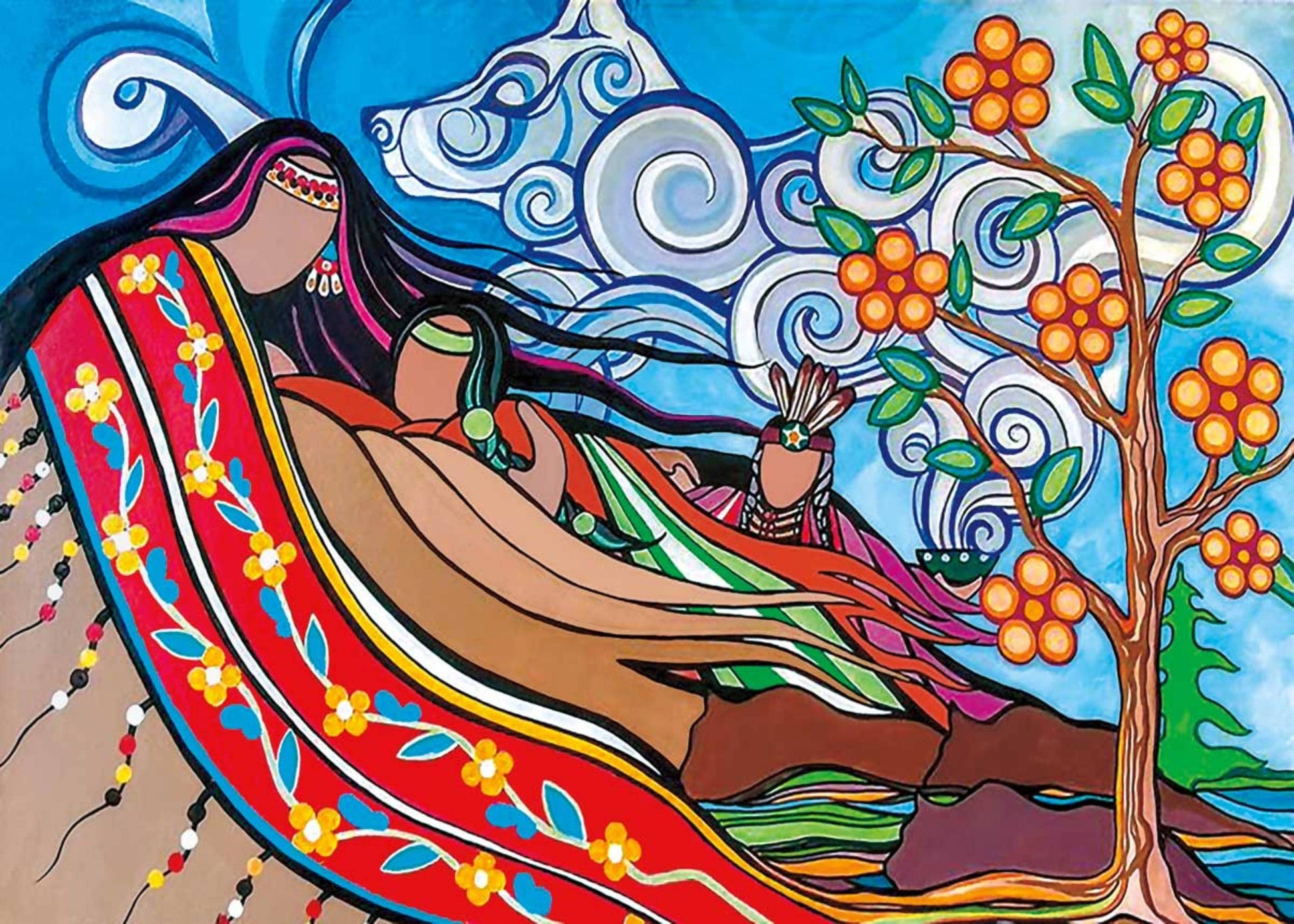 Pamela Cailloux was born in Chibougamau Québec. She is of Métis decent consisting of Huron and Algonquin heritage. Her artwork is heavily influenced by the teachings of the medicine wheel consisting of balance, seasons, elements and harmony. Mother earth is often represented in her works as an energy and spirit that is determined to heal and restore natural order. Pamela has been drawing all her life and the style we see today, began to take shape around 1995.