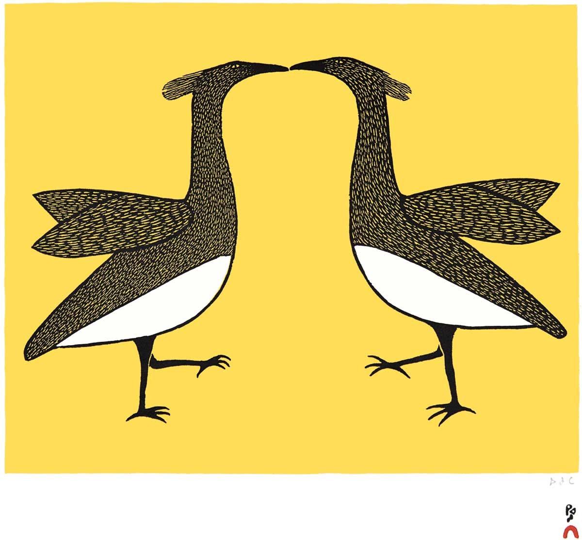 Kunik (Kiss), 2010 by Ohotaq Mikkigak, Inuit Art Card, Framed Art Card