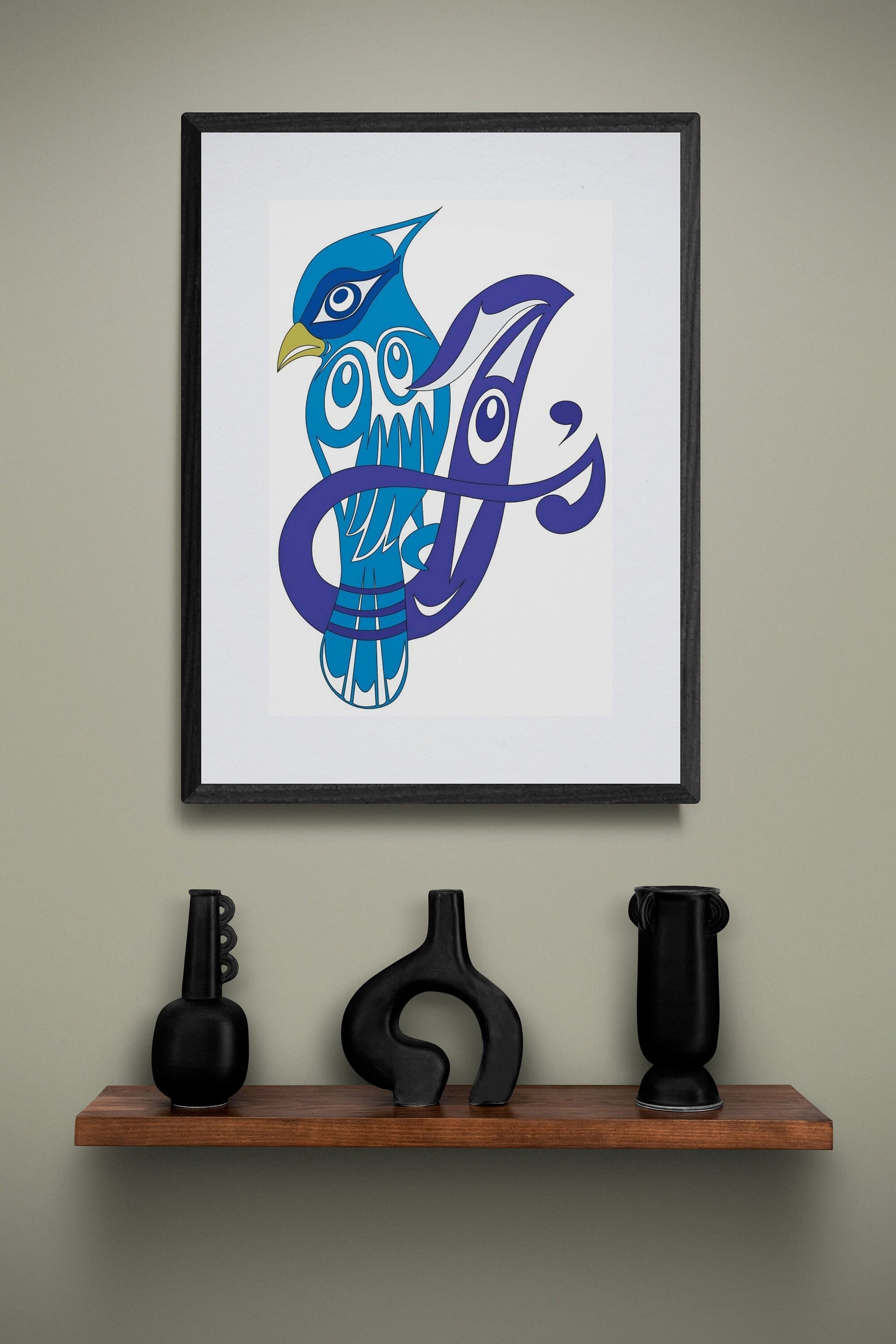 Lady Jay by Doug LaFortune, Indigenous Art Print, First Nations, Native American Indian Decor, Animal Blue Jay Print