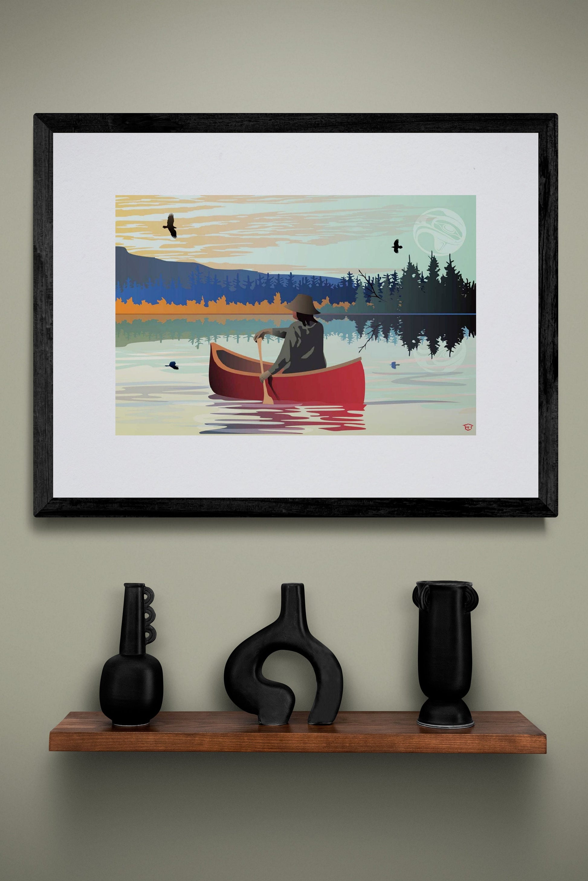 Lone Canoe By Mark Preston, Indigenous Art Print, First Nations, Native Americans, Tlingit, Yukon Territory, Framed Art