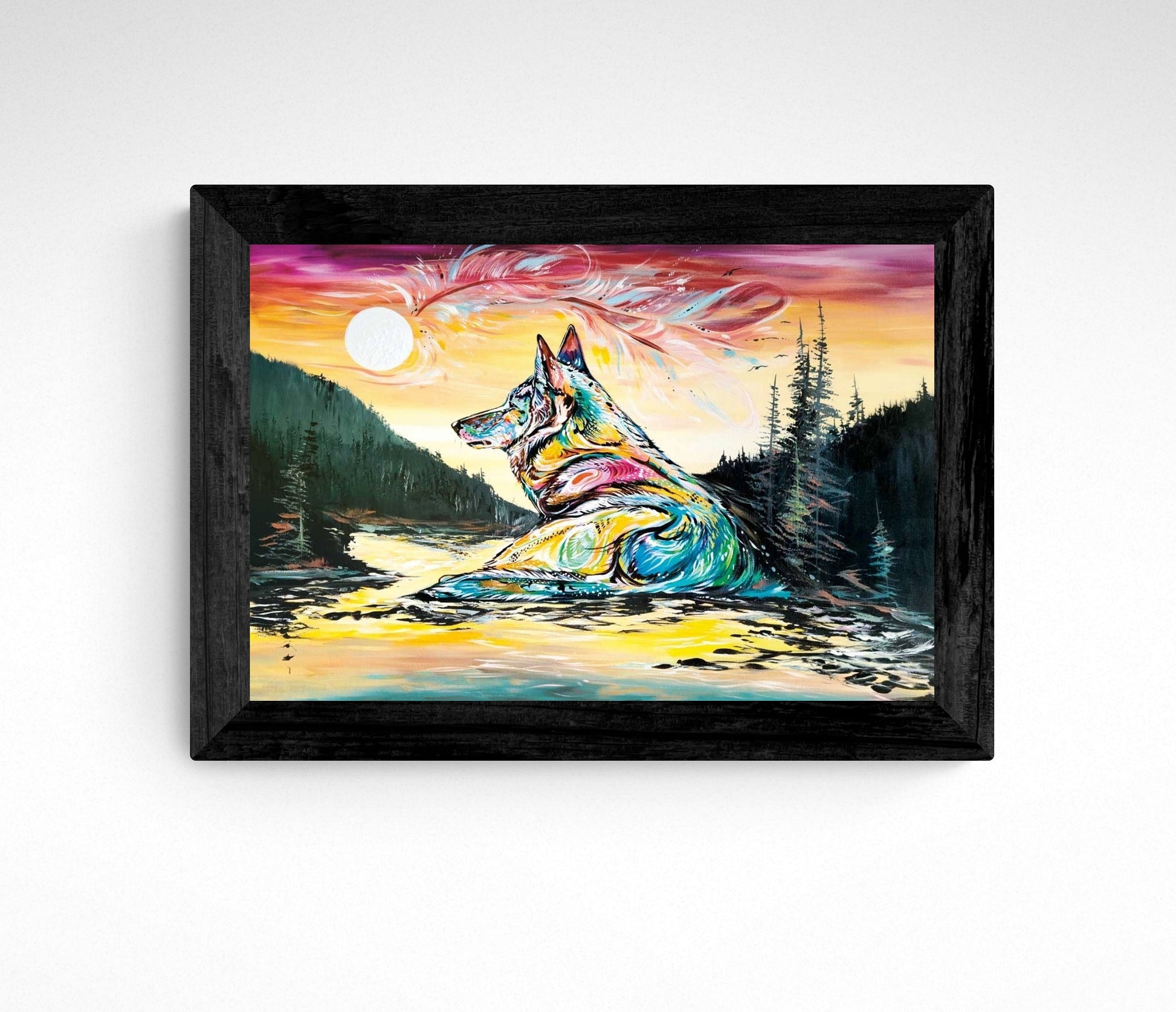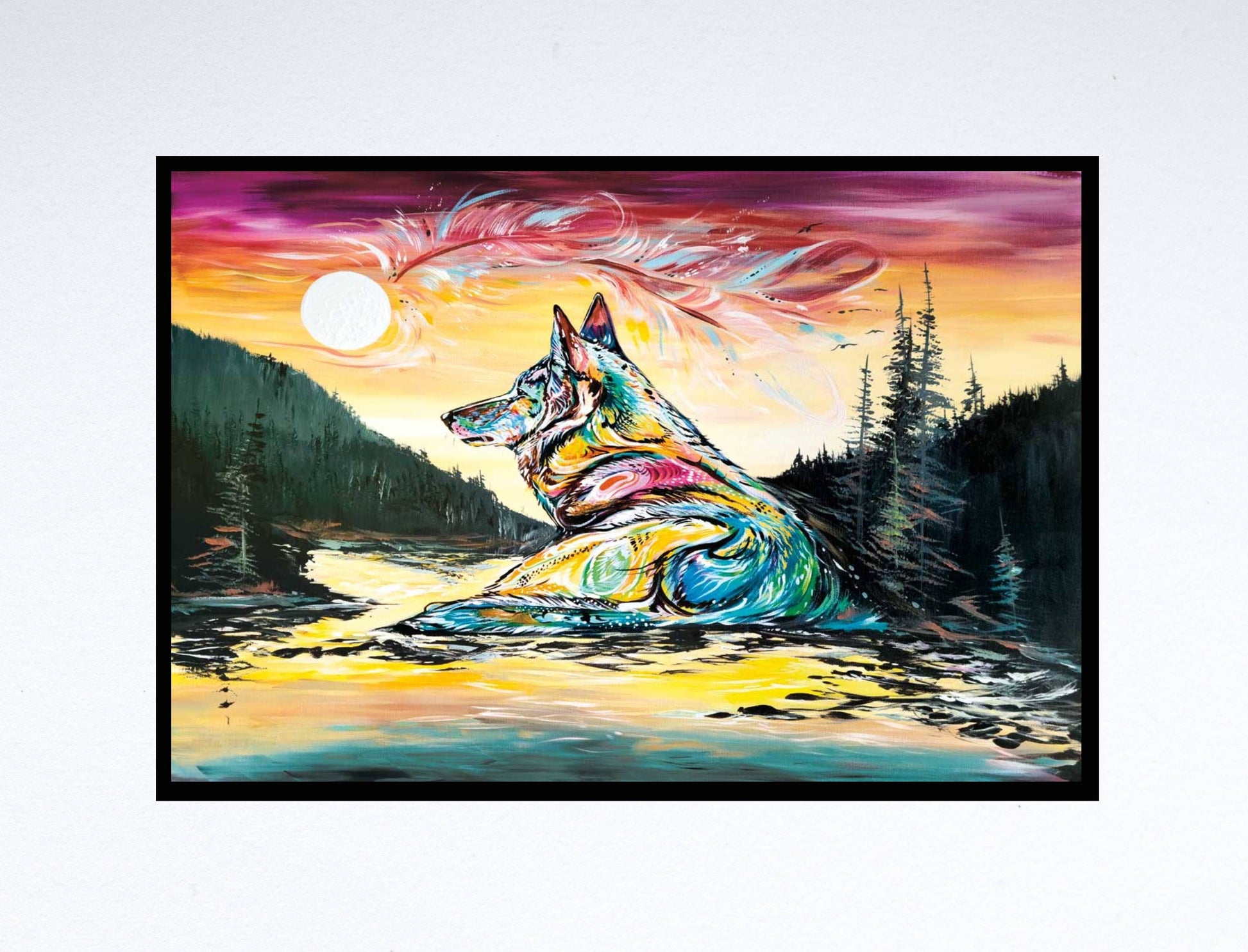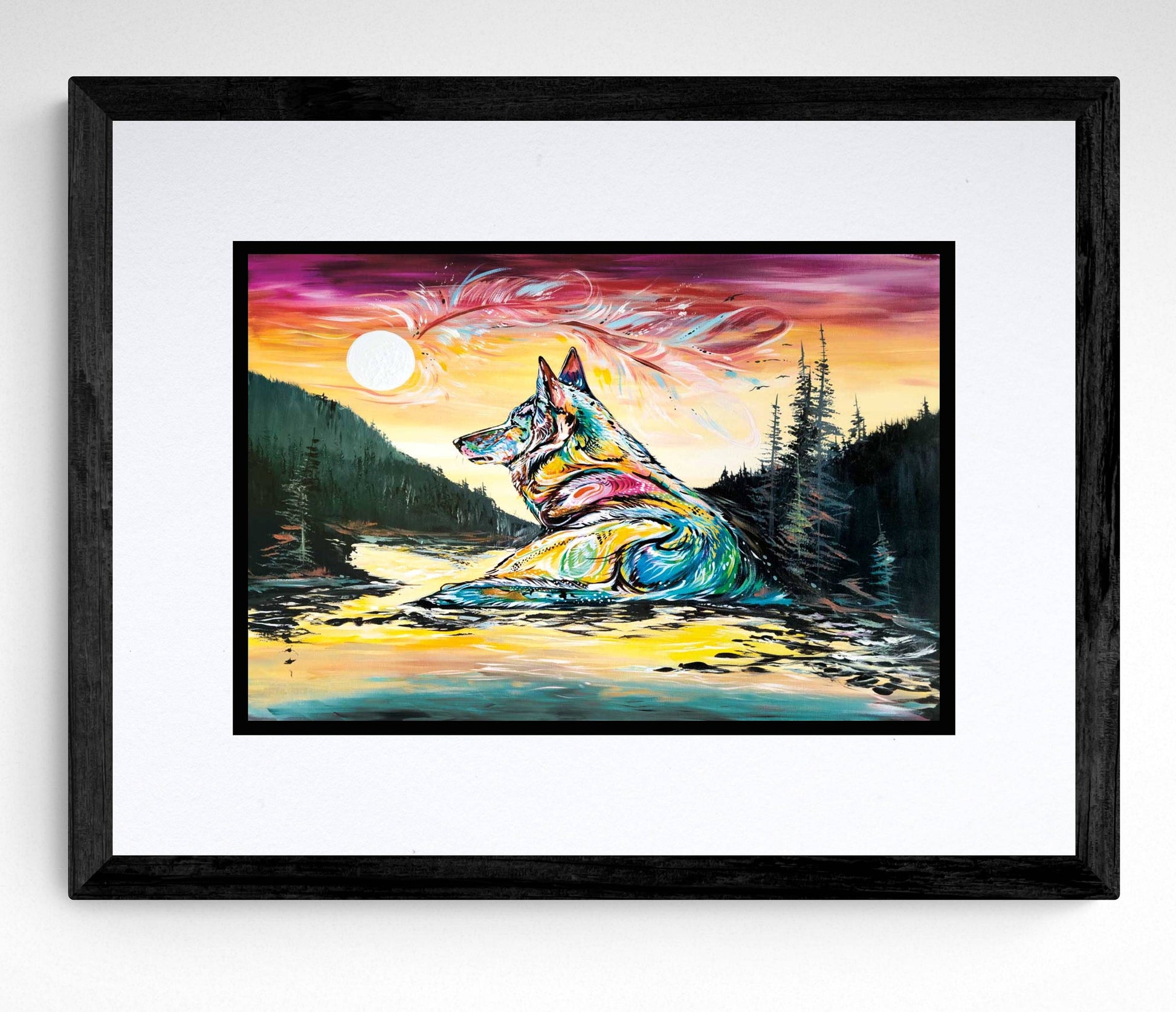 Lone Wolf By Carla Joseph, Indigenous Art Print, First Nations, Native Americans, Cree, Métis, Framed Art