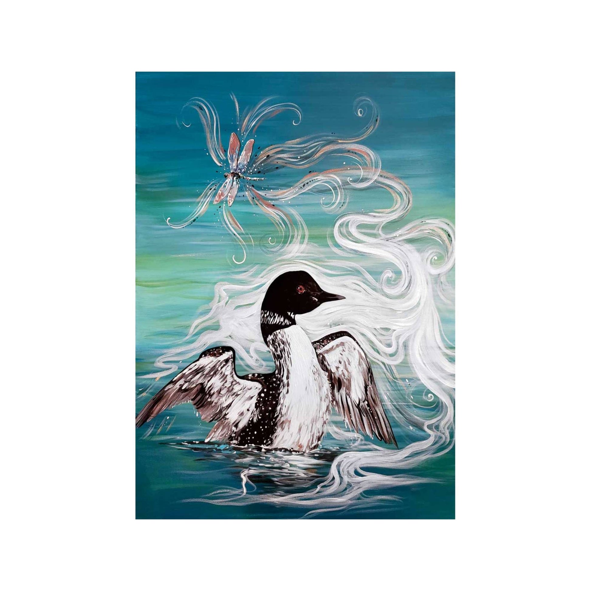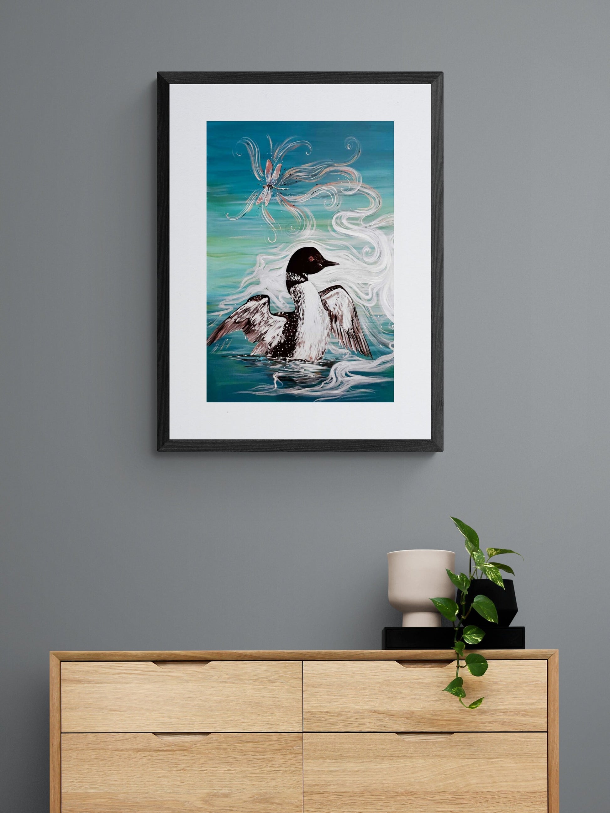 Loon With Dragonfly By Carla Joseph, Indigenous Art Print, First Nations, Native Americans, Cree, Métis, Framed Art