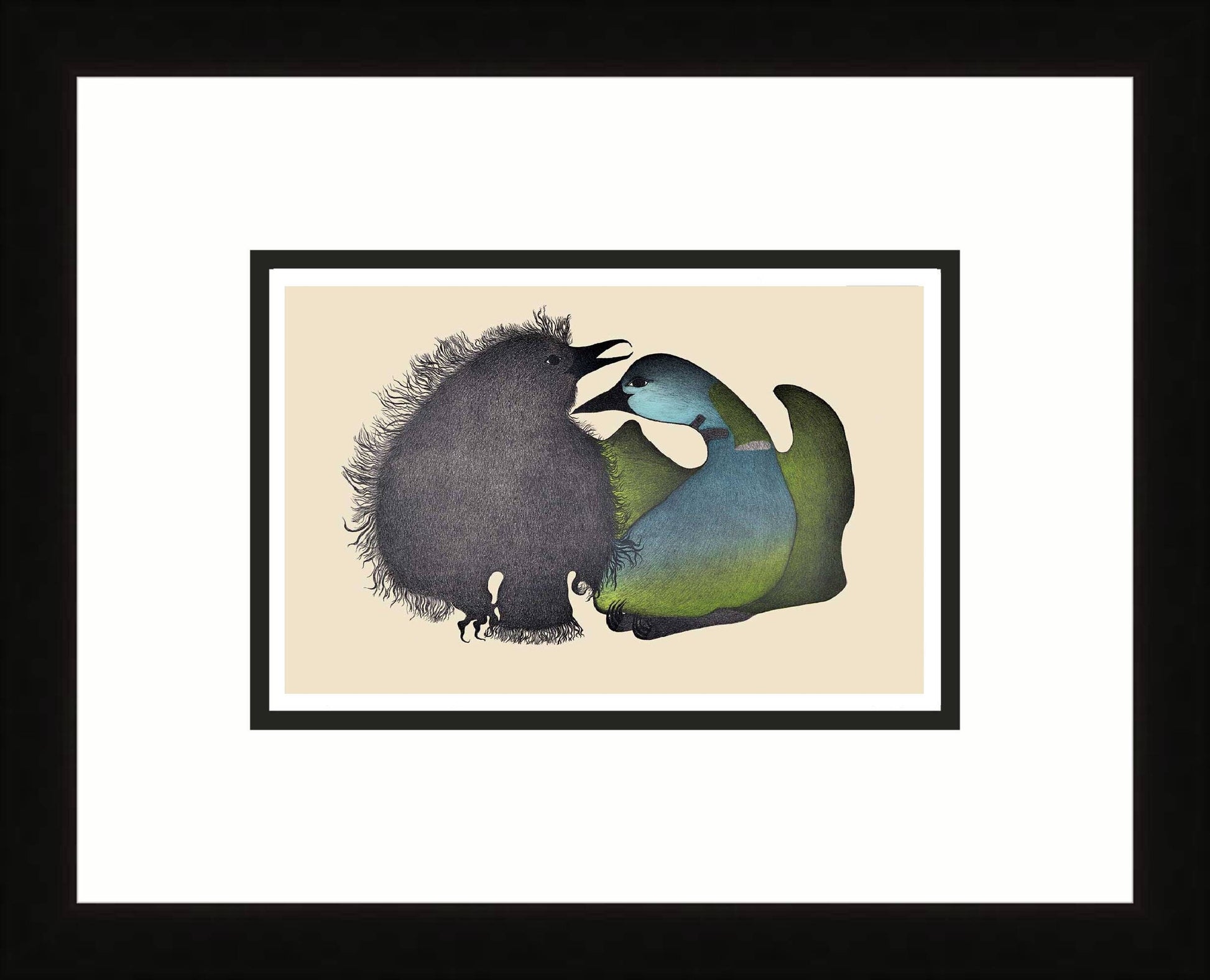 Loon With Young, 1998 by Pitaloosie Saila, Inuit Art Card, Framed Art Card