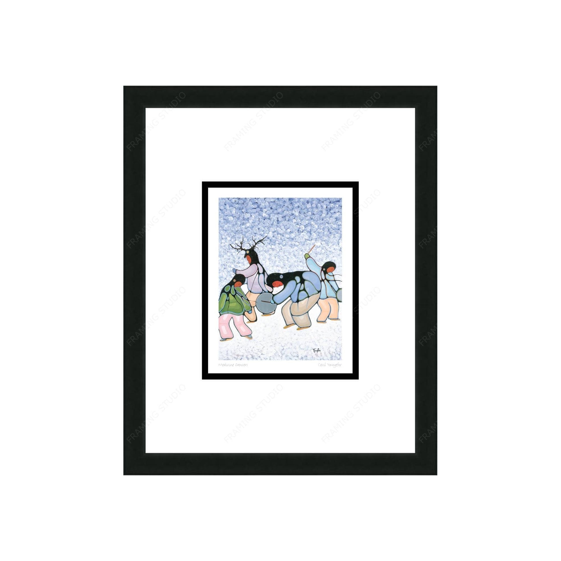 Framed Art Card: Finished Outside Size 13x16 White Mat with Black Inner Mat, 1.25” Black Frame, Finished Backing with Wire Hanger.