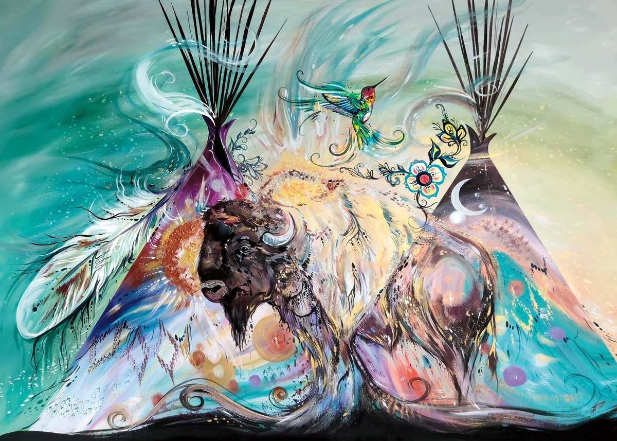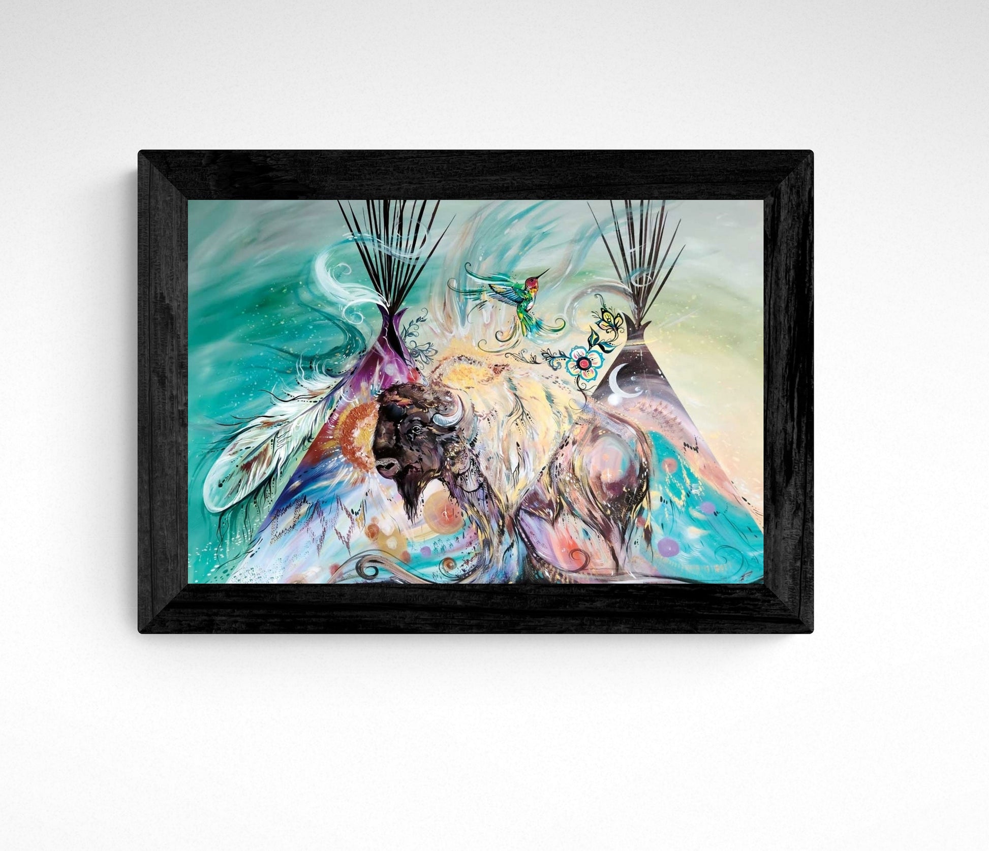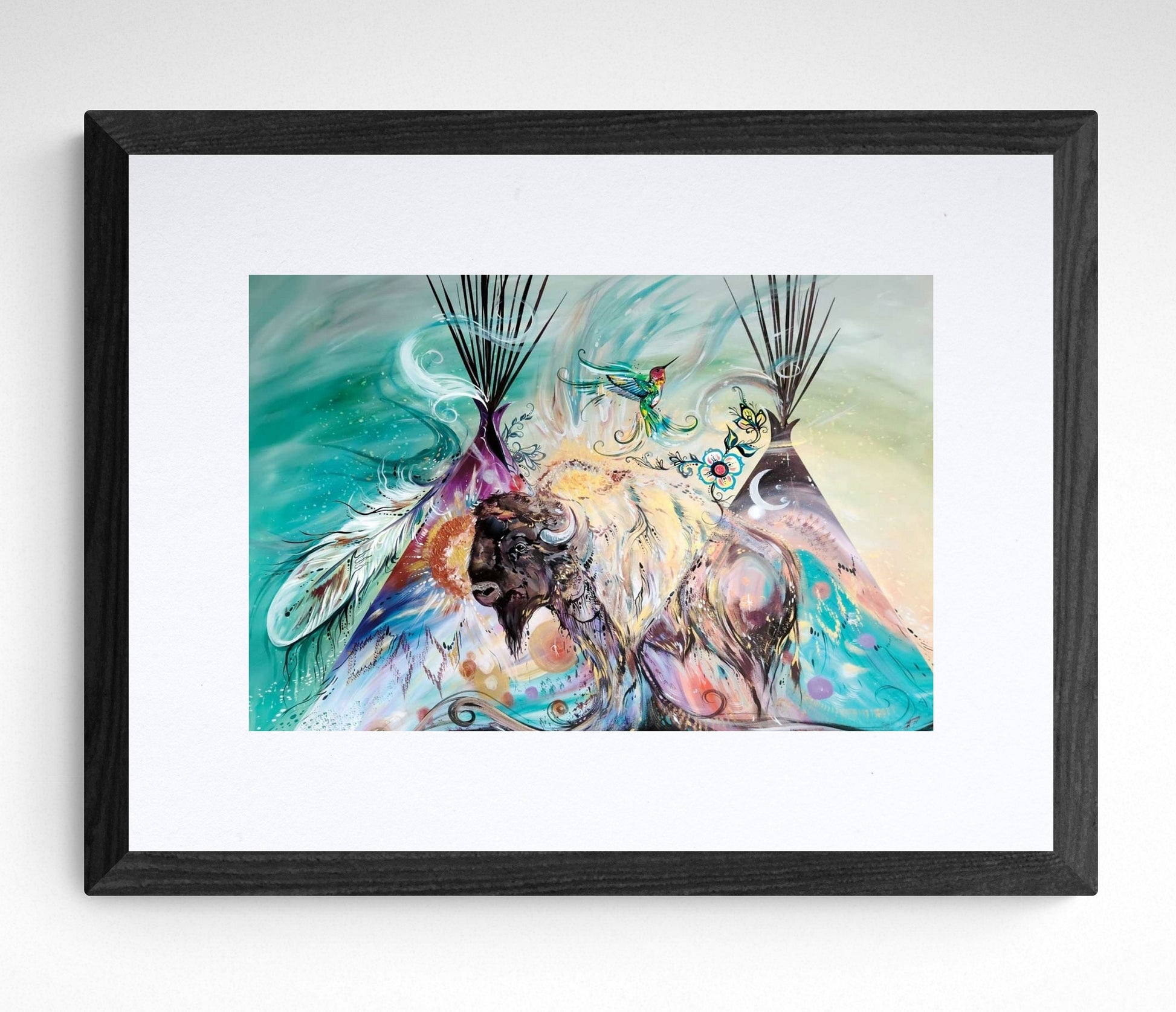 Mighty Buffalo By Carla Joseph, Indigenous Art Print, First Nations, Native Americans, Cree, Métis, Framed Art