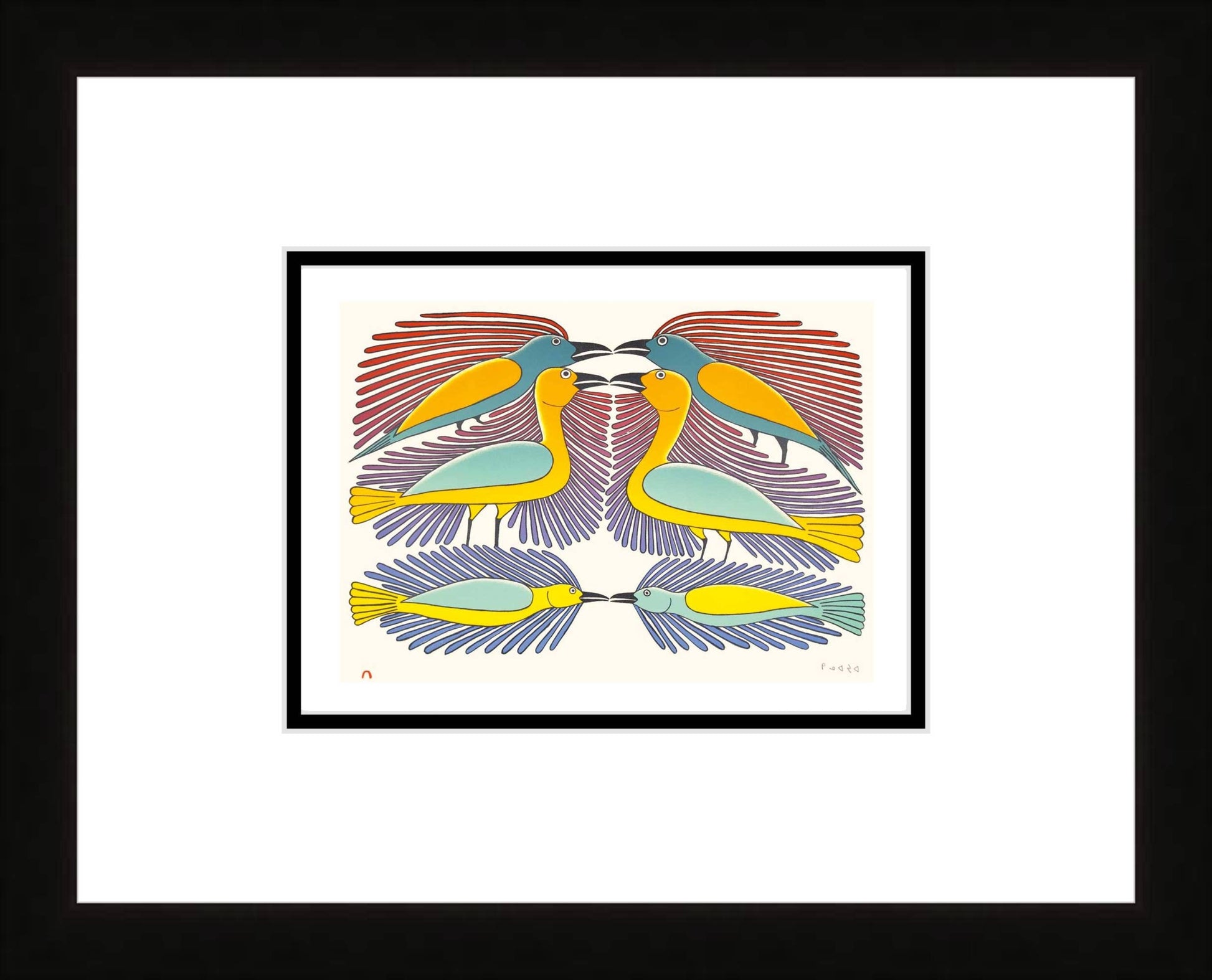 Mirrored Image, Lithograph, by Kenojuak Ashevak, Indigenous Inuit Art Card, Aboriginal Decor, Framed Art Card