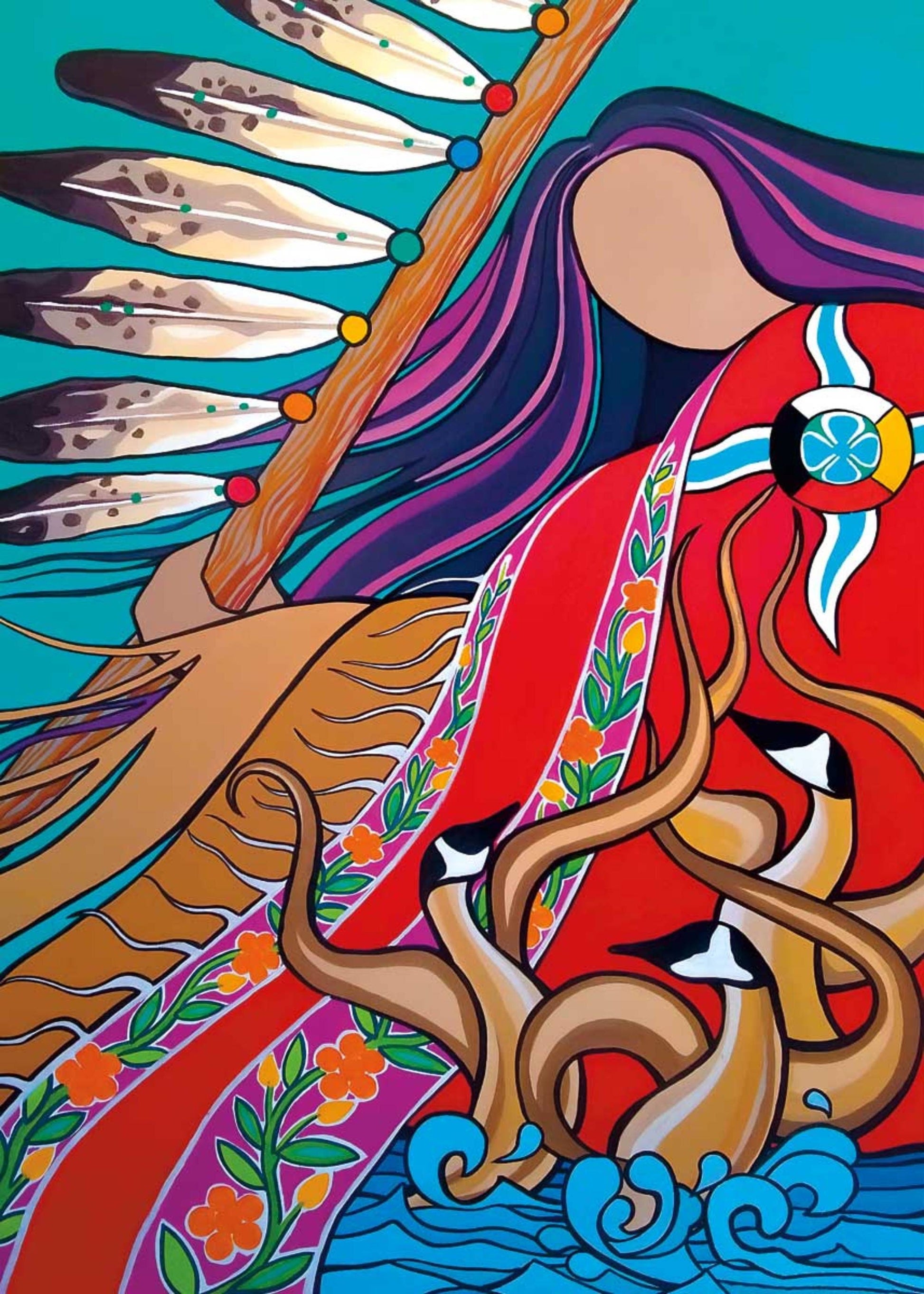 Pamela Cailloux was born in Chibougamau Québec. She is of Métis decent consisting of Huron and Algonquin heritage. Her artwork is heavily influenced by the teachings of the medicine wheel consisting of balance, seasons, elements and harmony. Mother earth is often represented in her works as an energy and spirit that is determined to heal and restore natural order. Pamela has been drawing all her life and the style we see today, began to take shape around 1995.