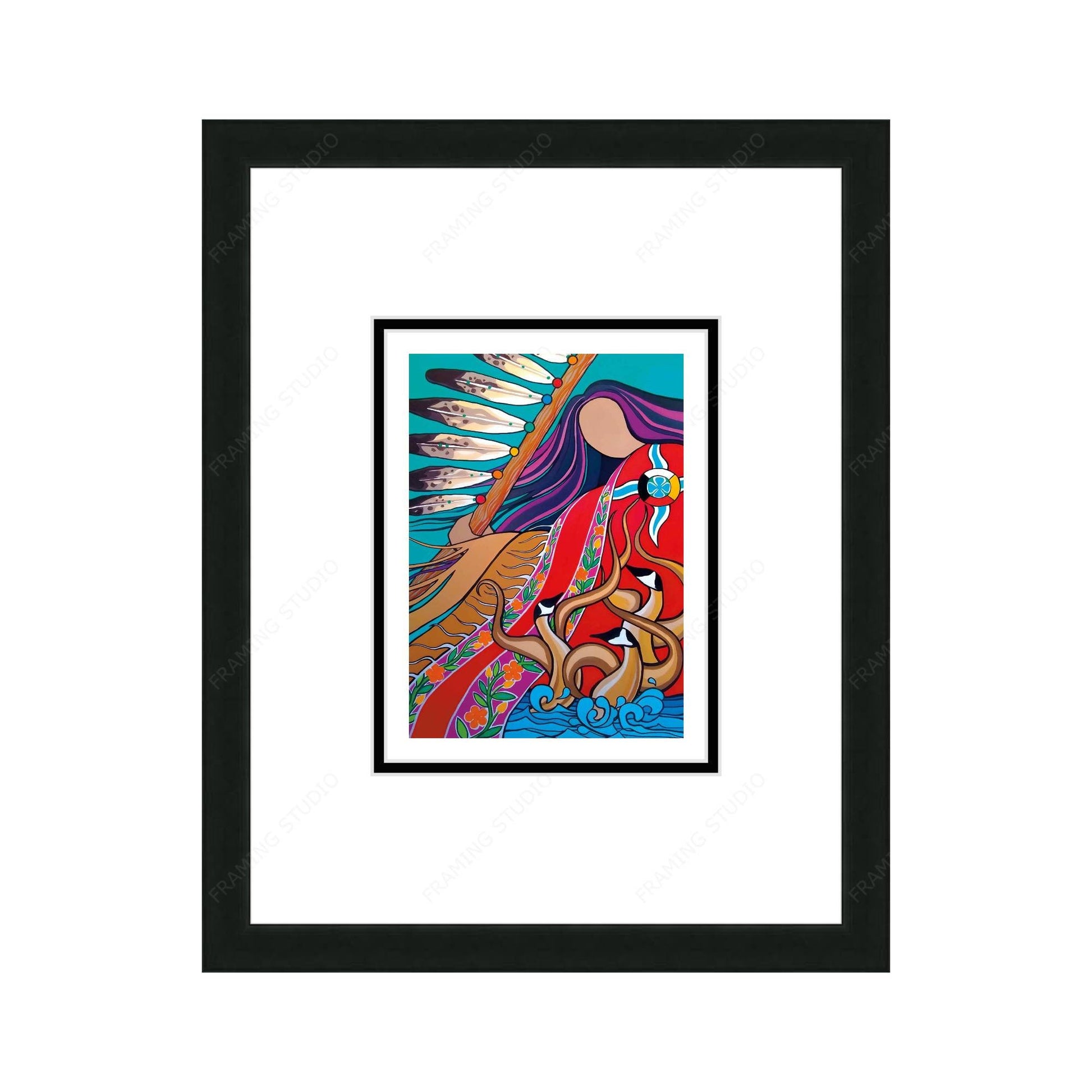 Mother Earth And Dancing Geese by Pam Cailloux, Indigenous Art Card, Framed Art Card, Métis Artist