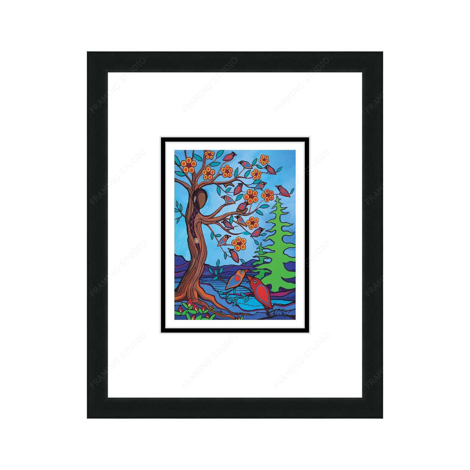 Framed Outside Finished Size: 13 X 16, Double Mat, 1.25” Black Wood Frame, Finished Backing with Wire Hanger and Artist's bio on the back.