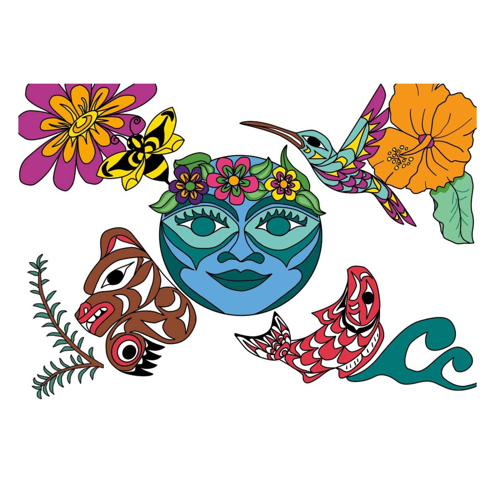 Angela grew up in Victoria, BC often helping her father with his work, painting carvings and totems. Growing up surrounded by such art inspired her to create her own designs, a contemporary style of Coast Salish art. Angela prefers to draw free hand and can be found painting on canvases and wood.