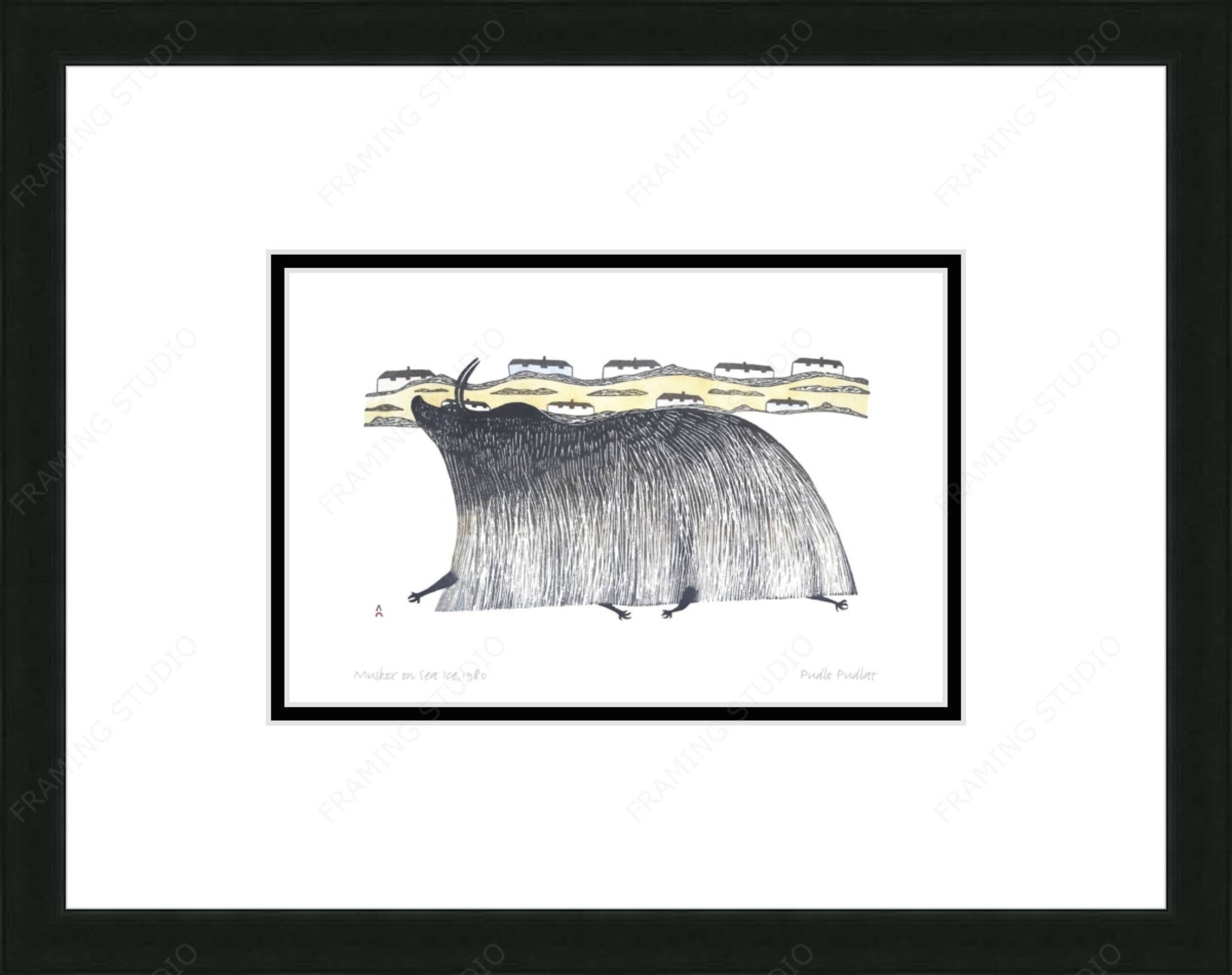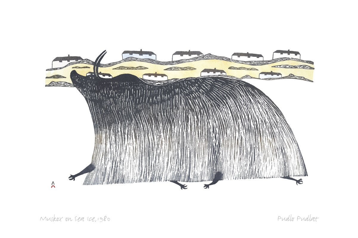 Muskox On Sea Ice, 1980 by Pudlo Pudlat, Indigenous Art Card, Inuit Framed Art Card