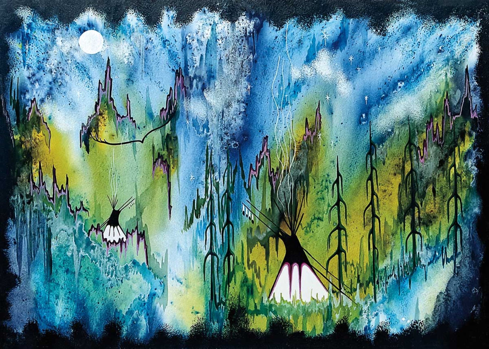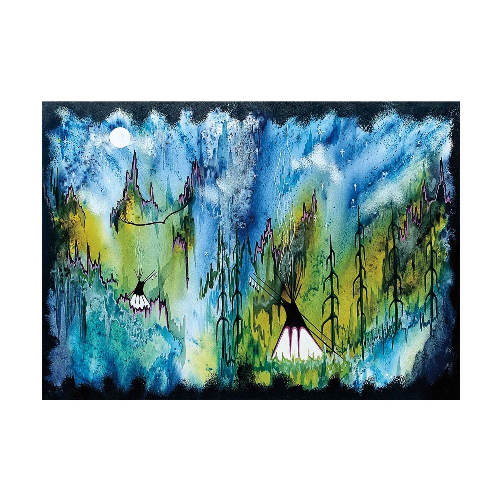 Mystical Village By William Monague, Indigenous Art Print, First Nations, Ojibway, Native Americans Indian Decor, Framed Art