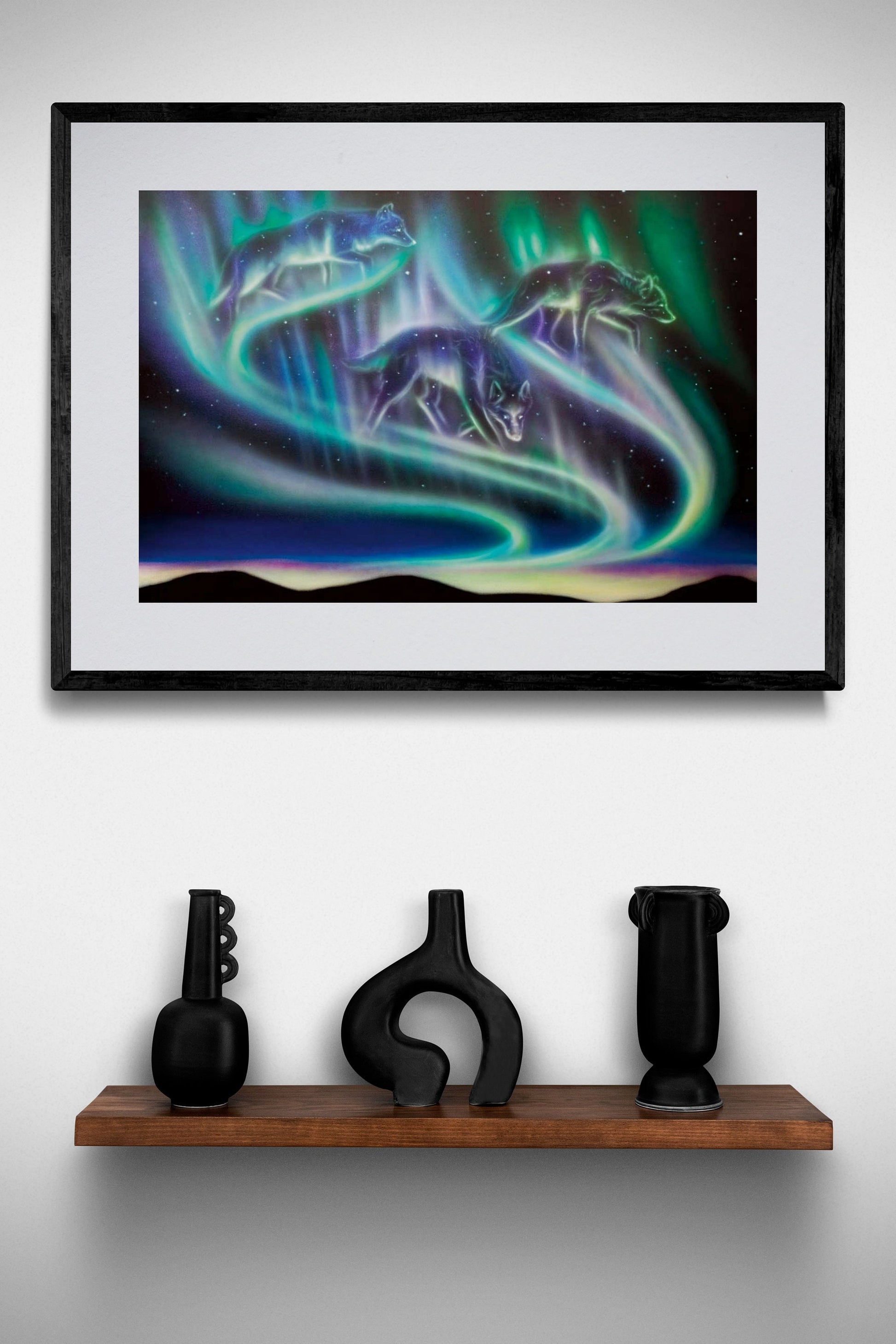 Nature By Amy Keller-Rempp Indigenous Art Print, Wolf, First Nations, Métis, Native Americans Decor, Northern Lights, Aurora Borealis