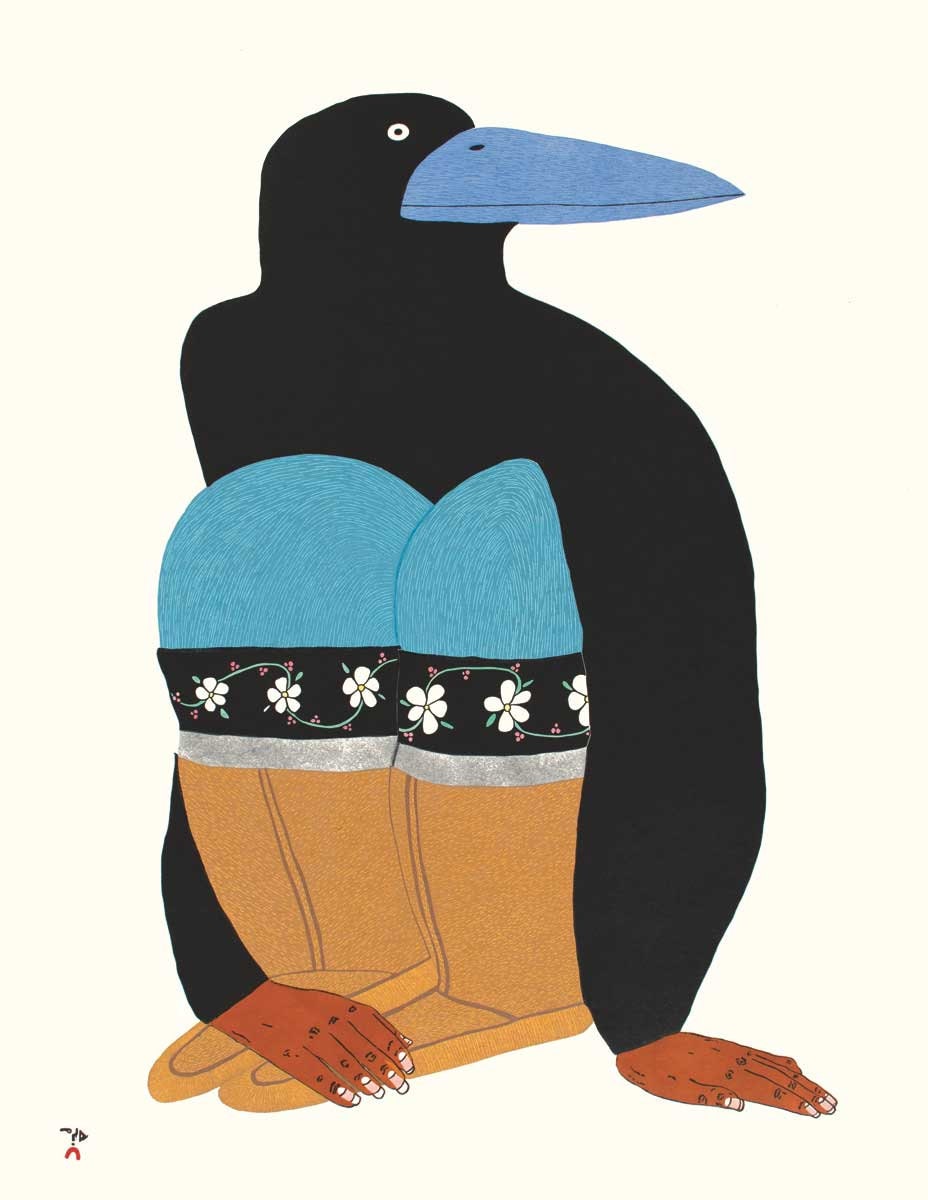 Born May 27, 1963, Ningeokuluk is one of the most versatile and intelligent graphic artists to emerge from the Kinngait Studios. In 2009, Ningeokuluk’s first children’s book was published by Groundwood Books (A Division of House of Anansi Press). Entitled Alego, it is an autobiographical story of a young girl named Alego who goes clam digging with her grandmother for the first time. The book was short-listed for the Governor General’s Literary Award for children’s illustration.