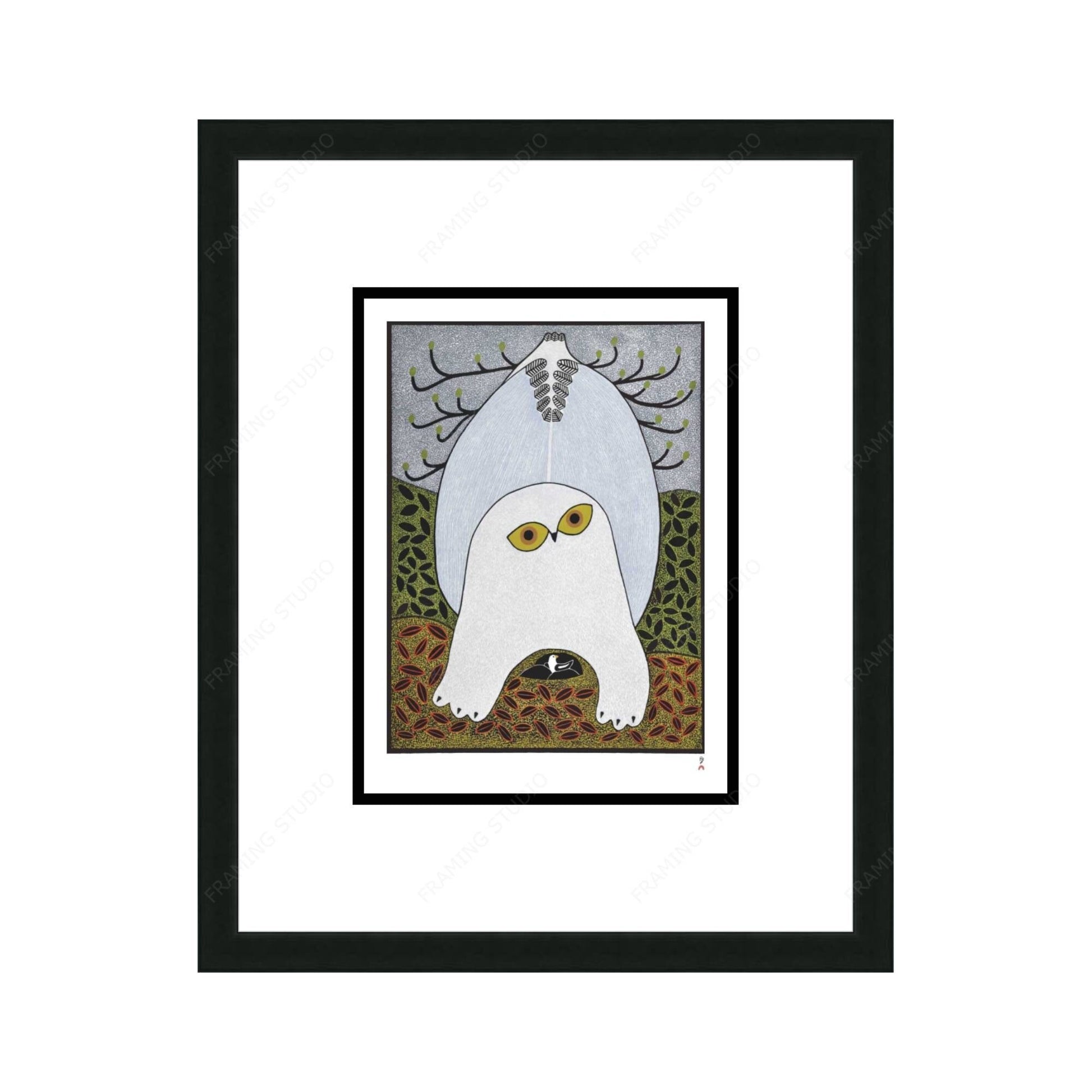 Opulent Owl, 2015 by Ningiukulu Teevee,, Indigenous Art Card, Inuit Framed Art Card