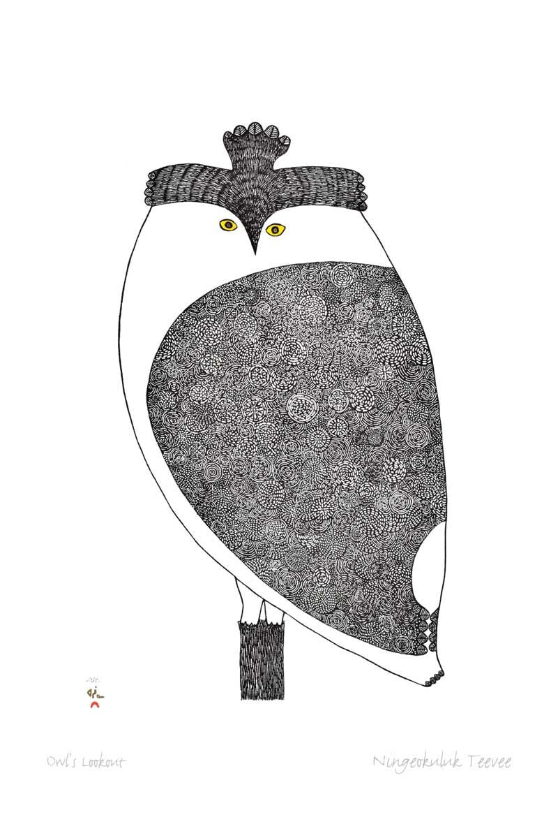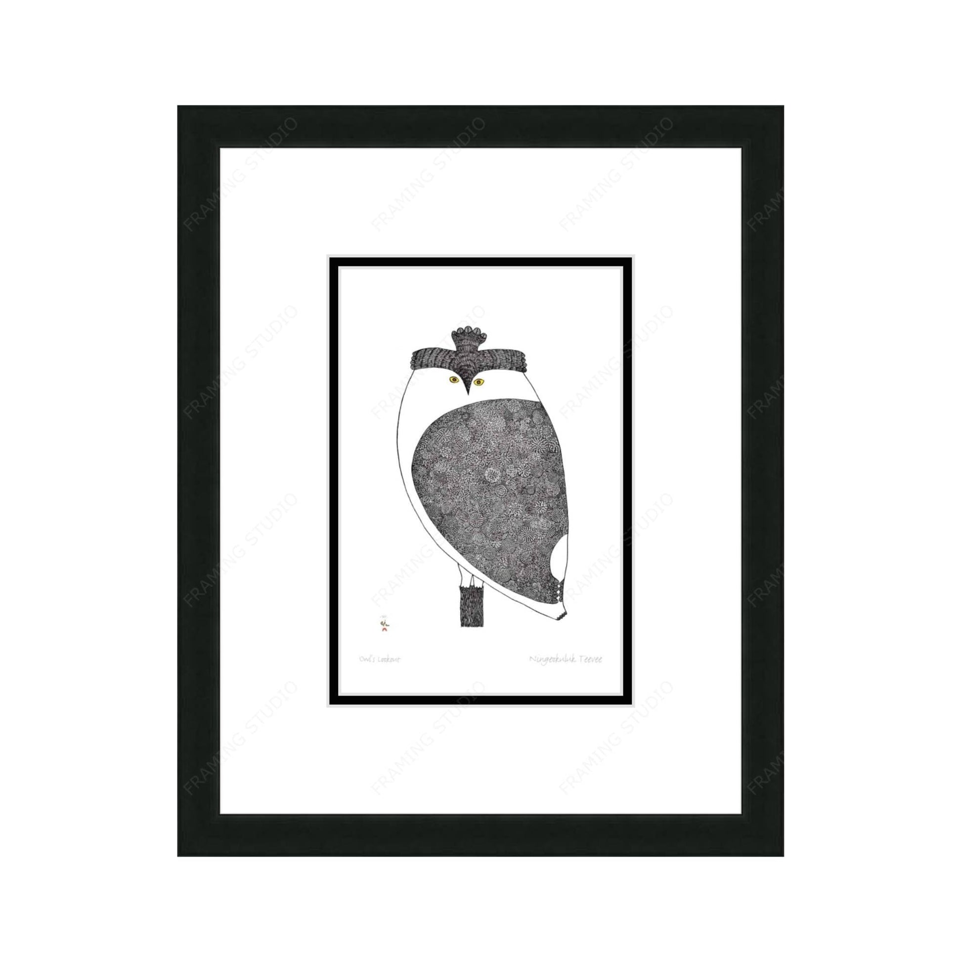 Owl’s Lookout by Ningiukulu Teevee,, Indigenous Art Card, Inuit Framed Art Card