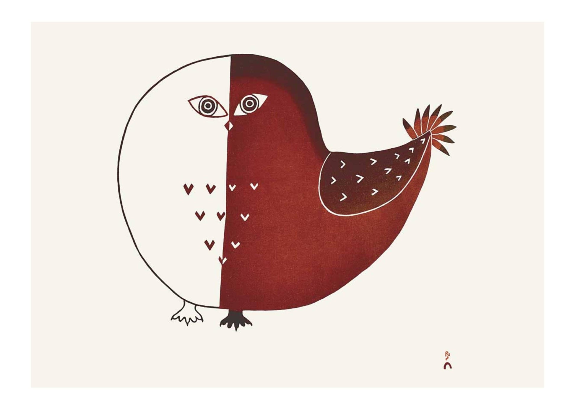 Owlet, 2006 by Ningiukulu Teevee, Indigenous Inuit Art Card, Aboriginal Decor, Framed Art Card