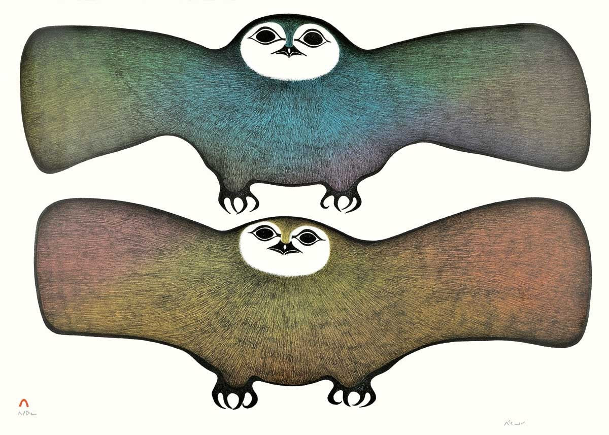 Owls Of The Night, 1990, Lithograph Inuit Art Card