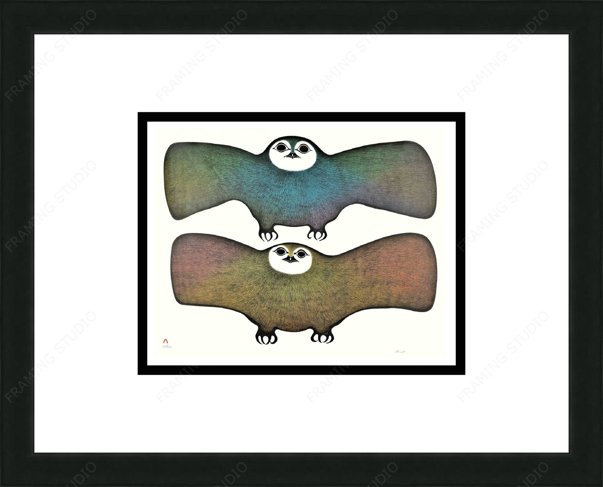 Owls Of The Night, 1990l by Pitaloosie Saila, Inuit Art Card, Framed Art Card