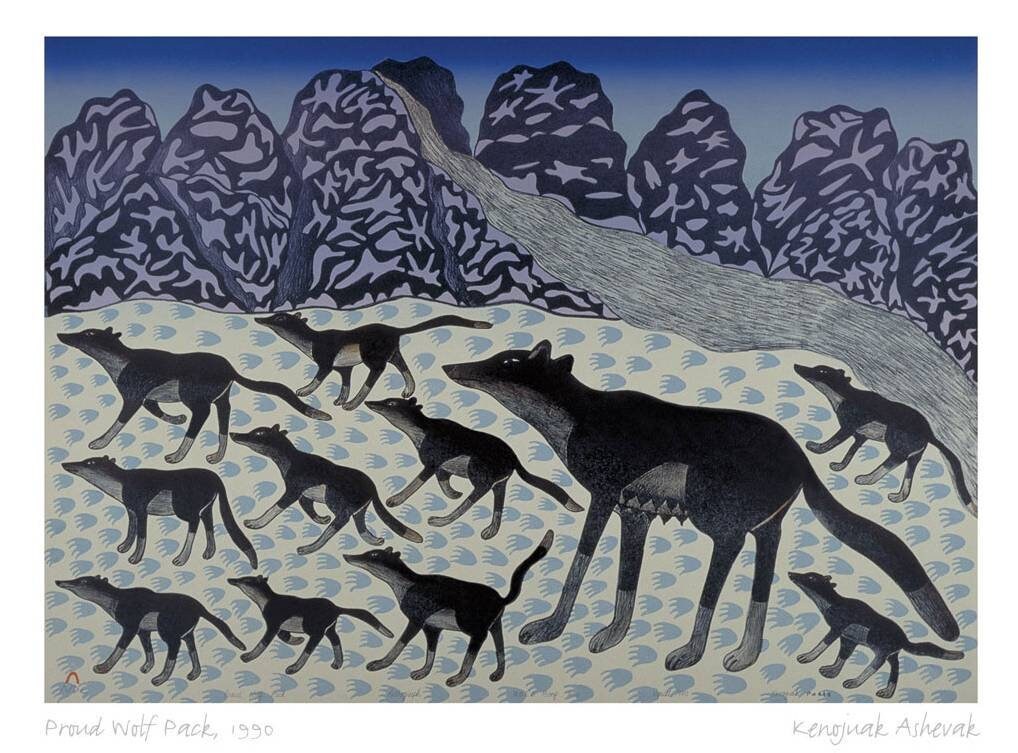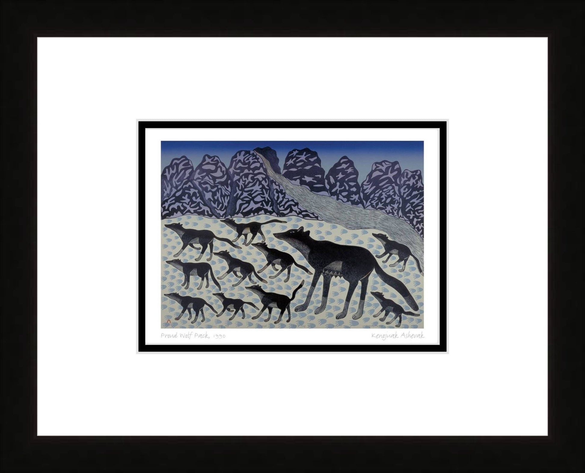 Proud Wolf Pack, 1990 by Kenojuak Ashevak, Indigenous Inuit Art Card, Aboriginal Decor, Framed Art Card
