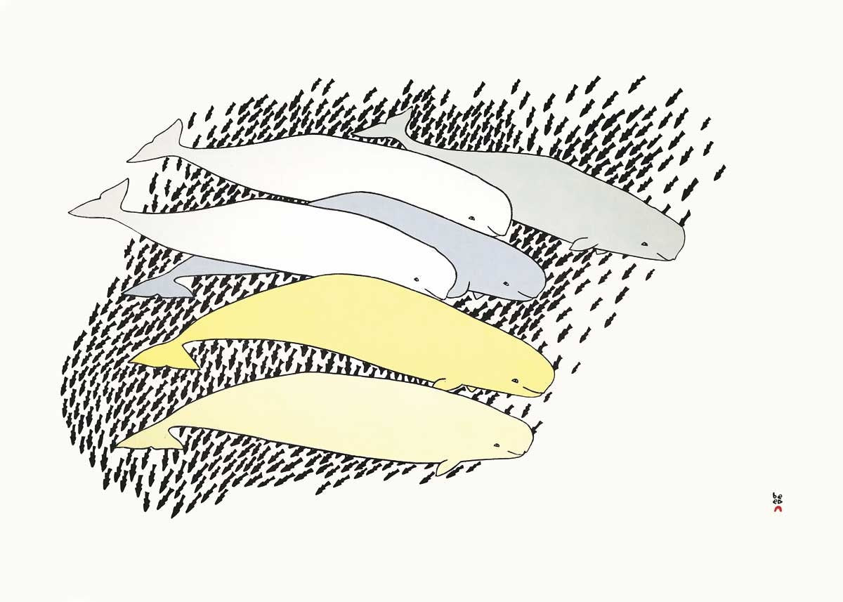 Qilalugaq (Beluga) by Tim Pitsiulak, Indigenous Art Card, Inuit Framed Art Card