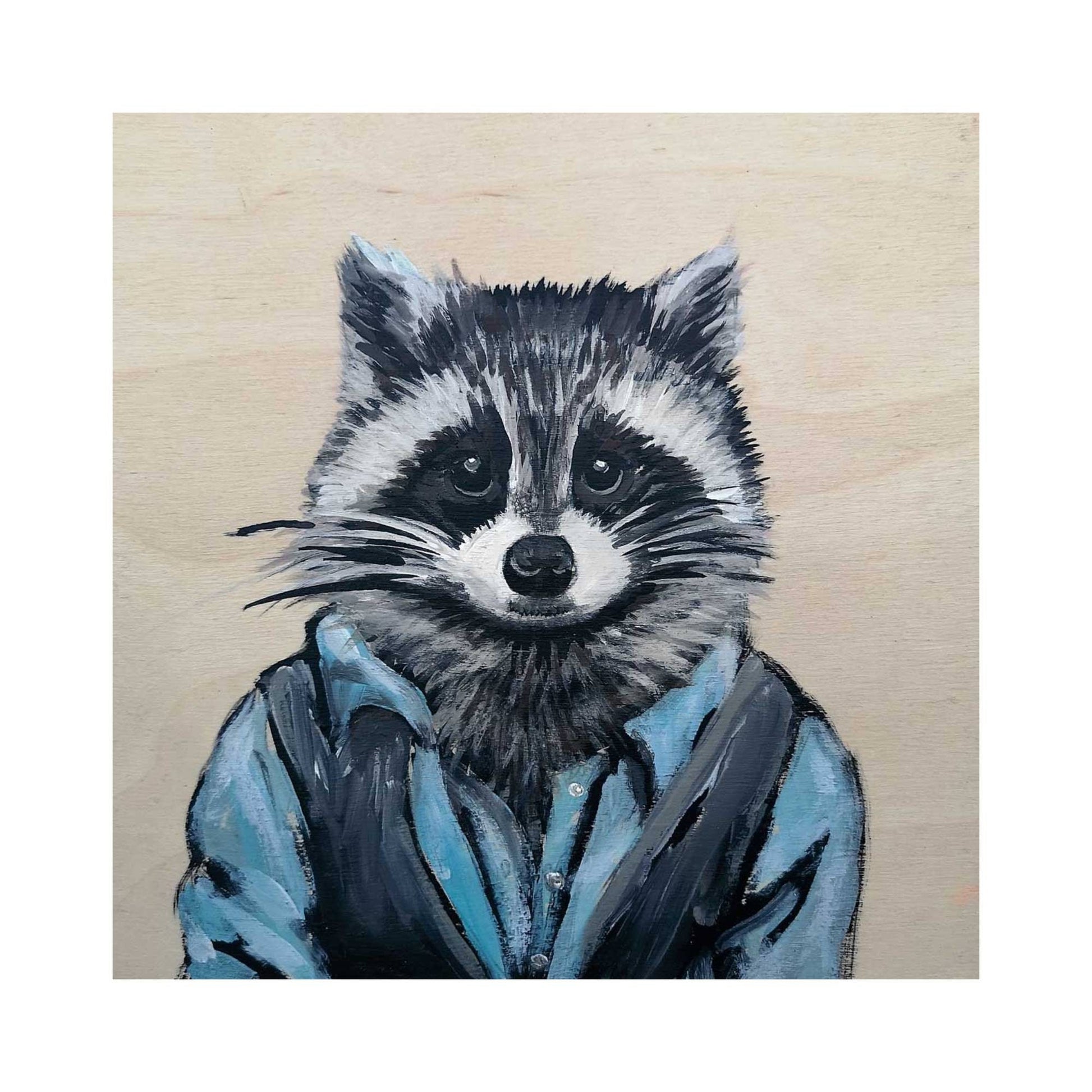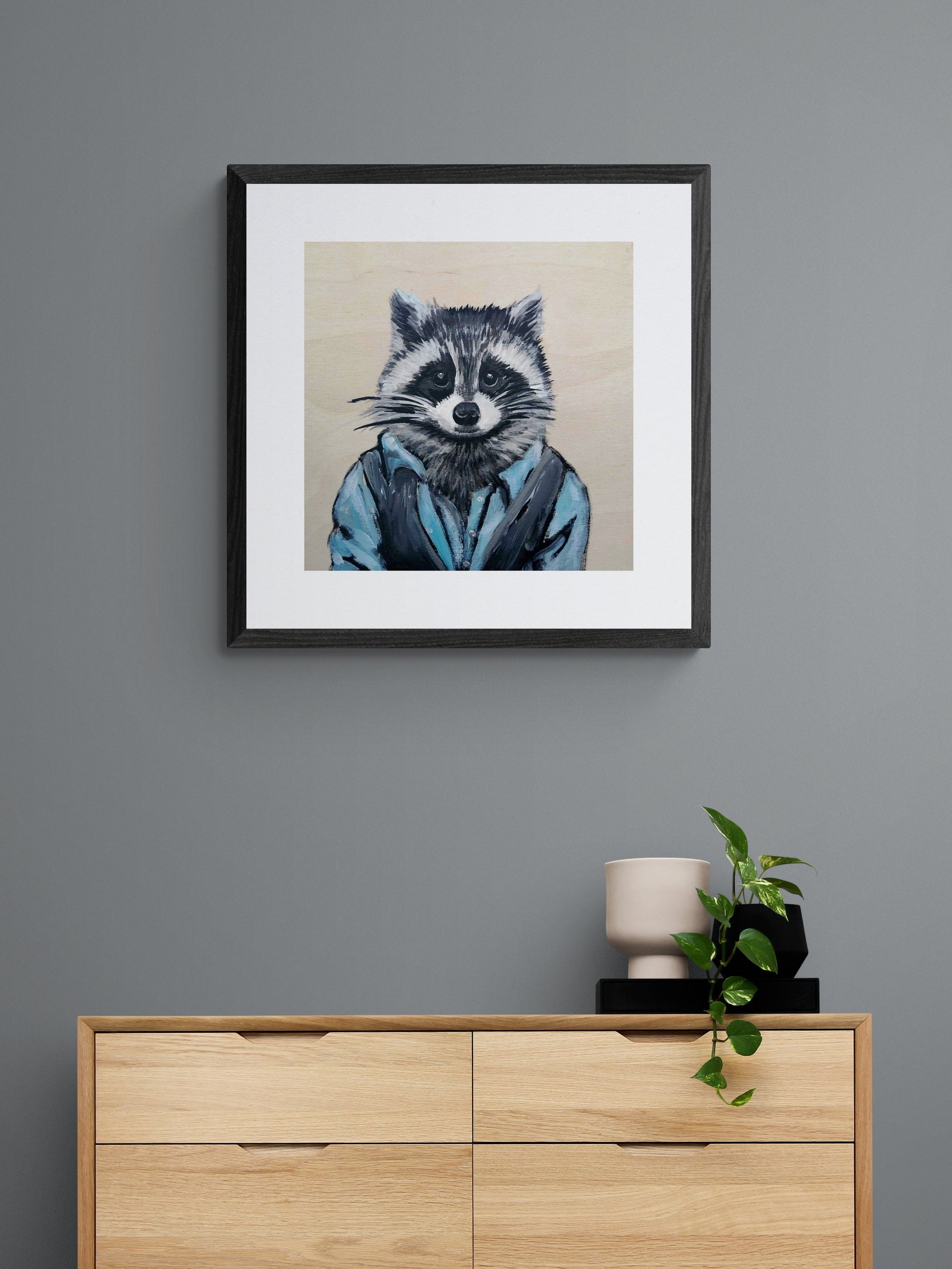 Racoon in a Vest By Wynne Parkin, Canadian Artist, Canadiana Art Print, Framed Art