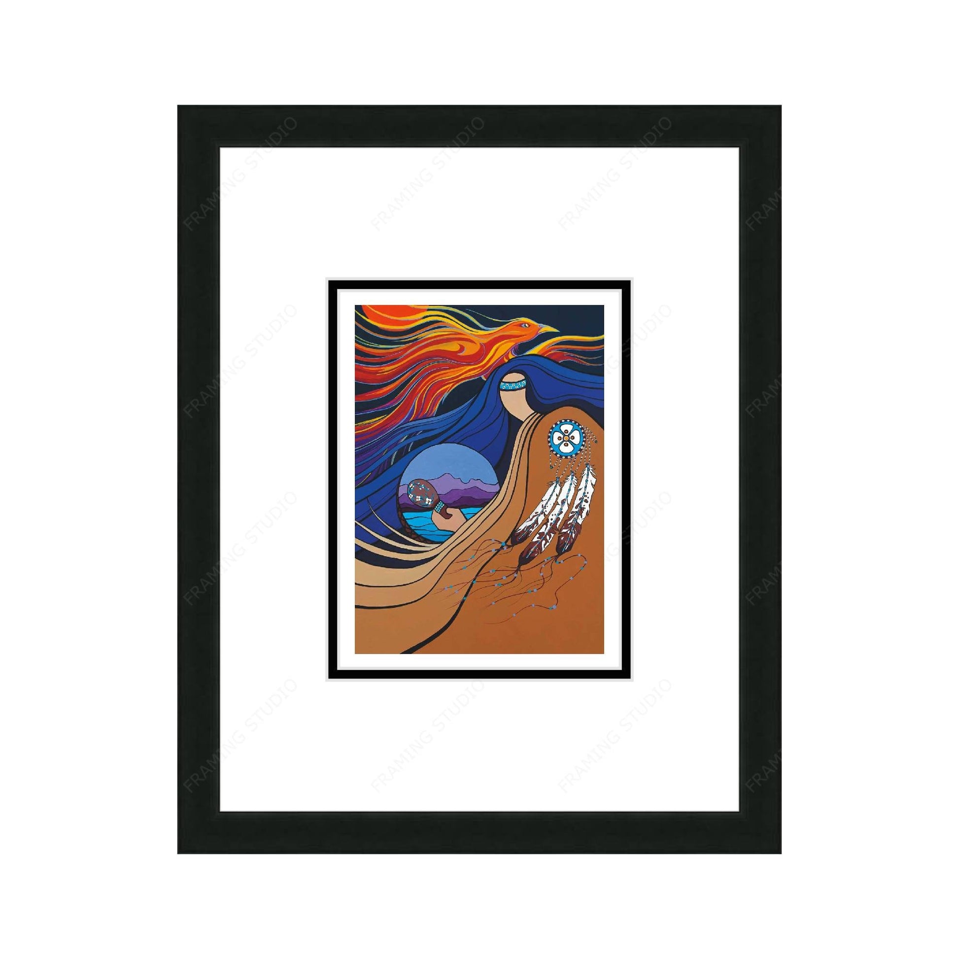 Raising The Drum by Pam Cailloux, Indigenous Art Card, Framed Art Card, Métis Artist