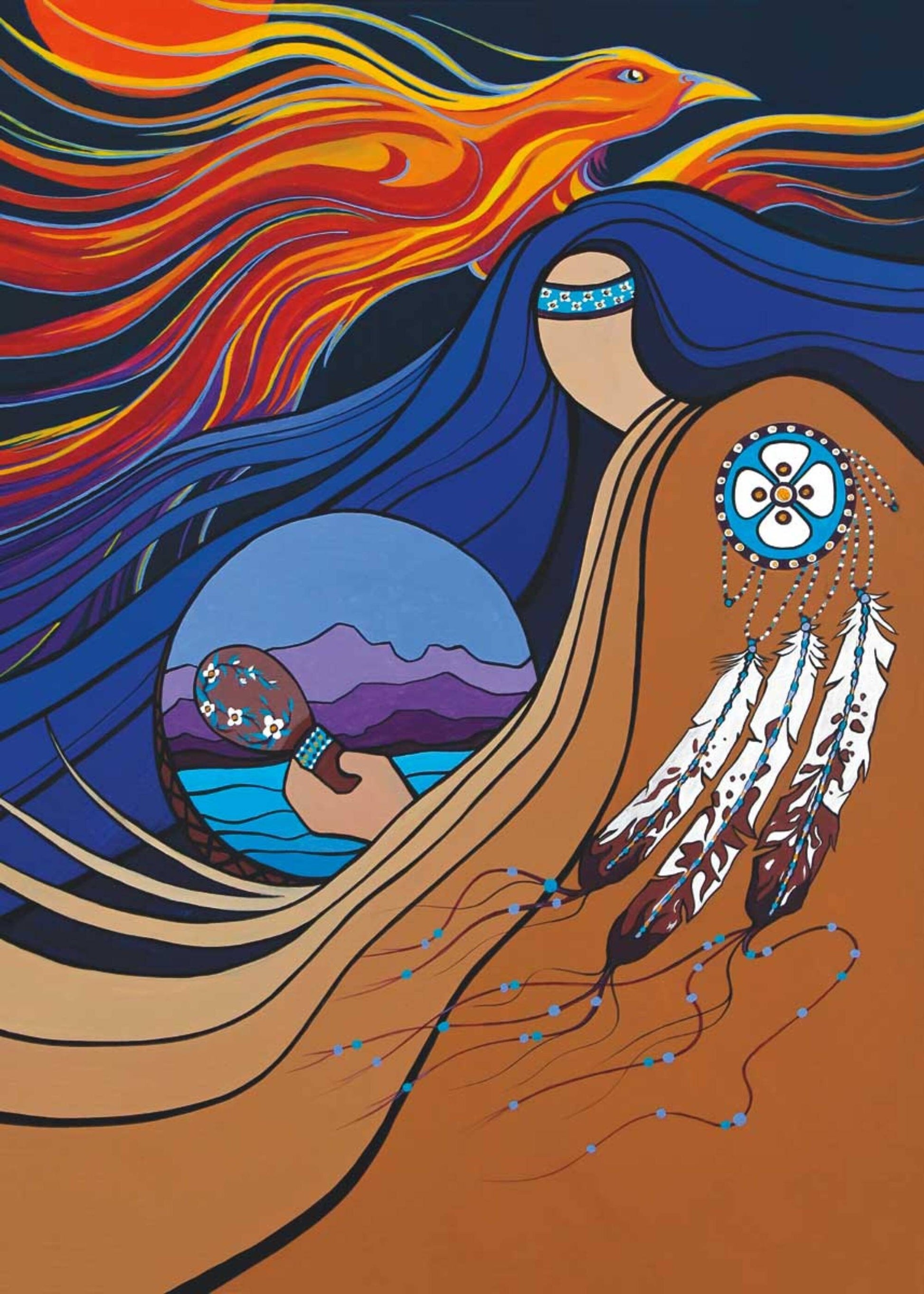Pamela Cailloux was born in Chibougamau Québec. She is of Métis decent consisting of Huron and Algonquin heritage. Her artwork is heavily influenced by the teachings of the medicine wheel consisting of balance, seasons, elements and harmony. Mother earth is often represented in her works as an energy and spirit that is determined to heal and restore natural order. Pamela has been drawing all her life and the style we see today, began to take shape around 1995.