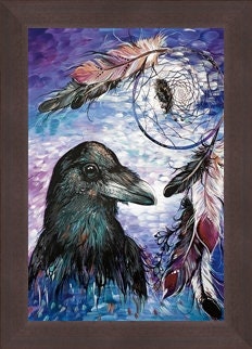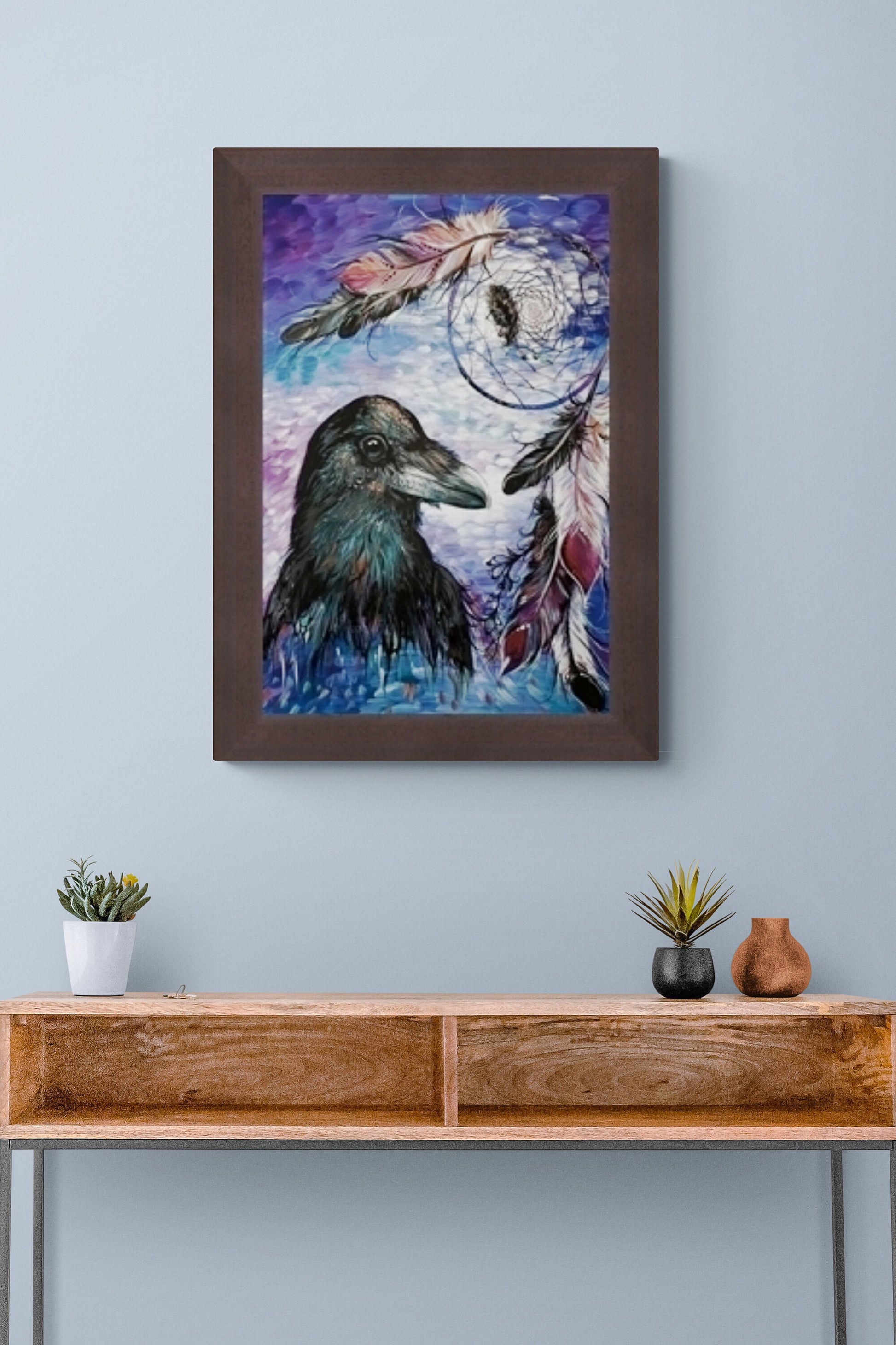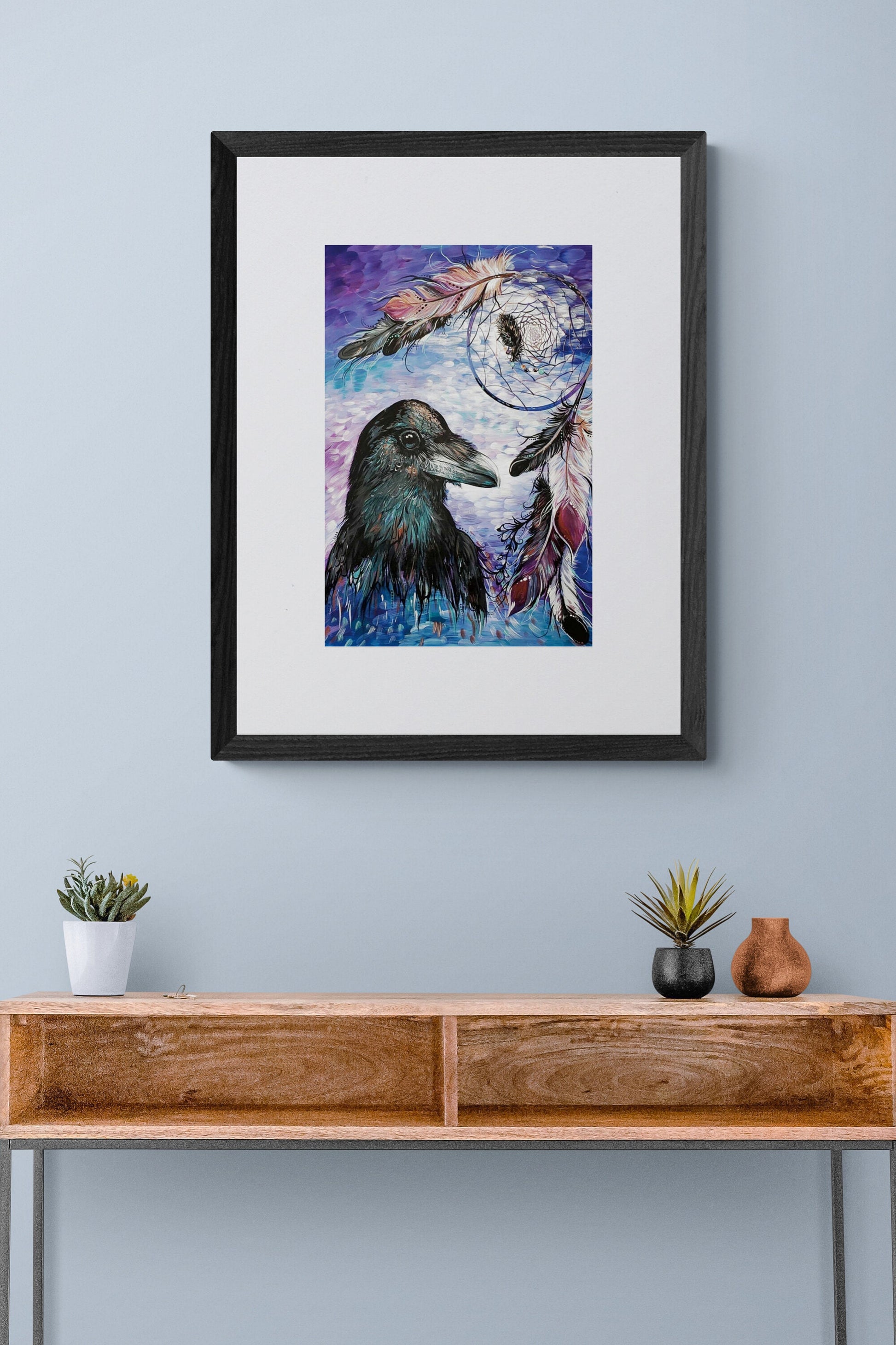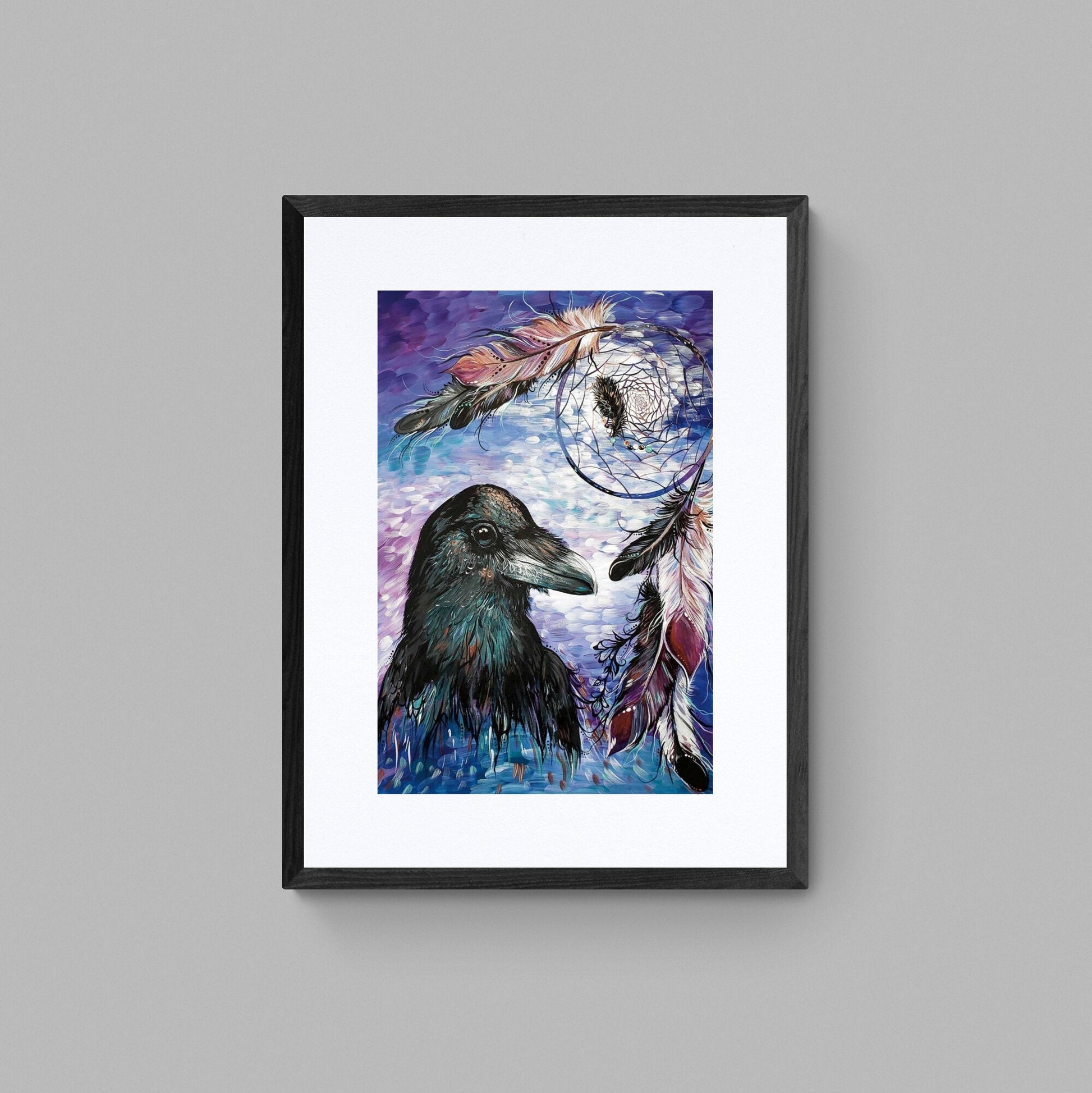 Raven Dream Catcher by Carla Joseph, Indigenous Art Print, First Nations, Cree Culture, Native American Indian Decor