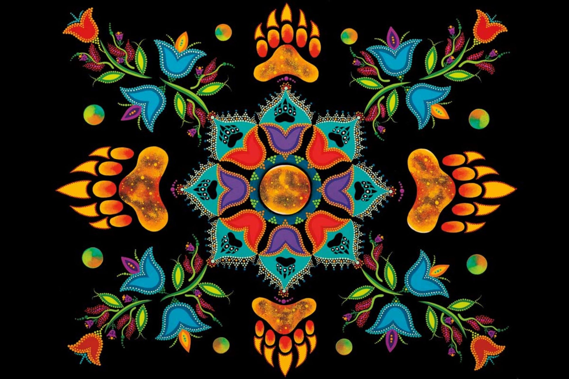 A Mi’gmaq artist born and raised on the shores of the Restigouche River, Tracey Metallic’s talent found expression as a founding member of Pugwalesg, a Mi’gmaq women’s hand drum group. Tracey’s career in painting was launched as a therapeutic outlet, painting cartoon characters for her grandchildren. Upon sharing her work on social media Tracey began receiving requests for abstract paintings. These initial pieces evolved with confidence into her own designs.