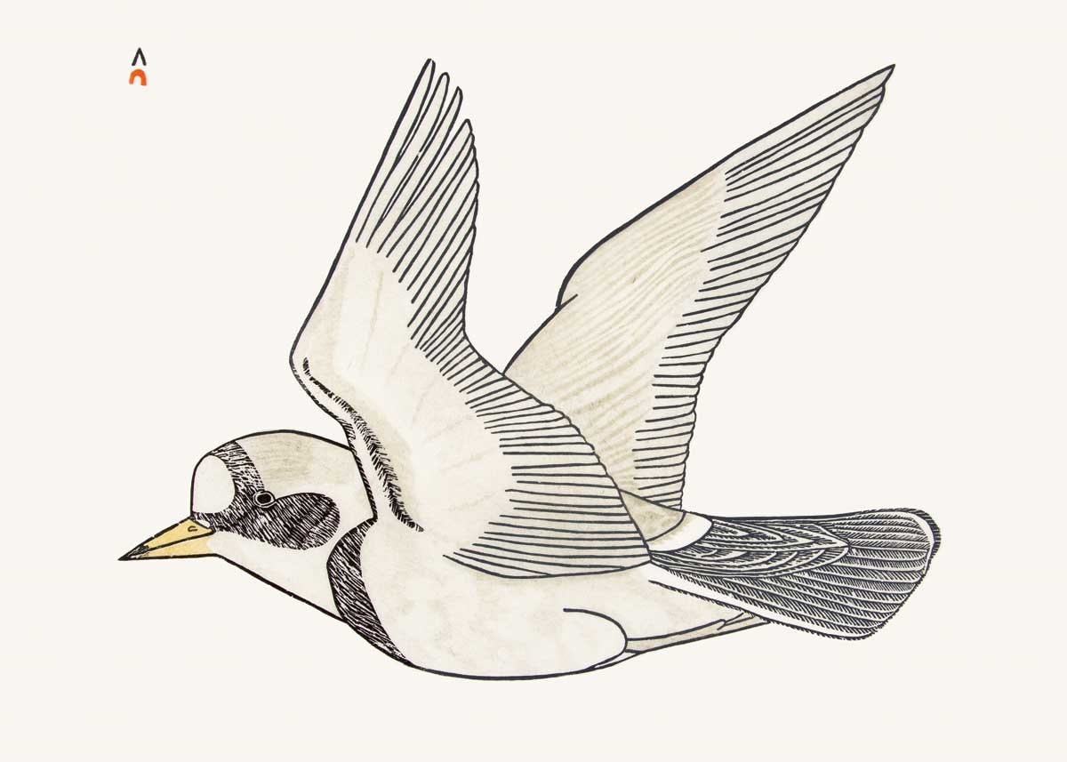 Sailing On The Breeze, 1984 by Kananginak Pootoogook, Indigenous Art Card, Inuit Framed Art Card