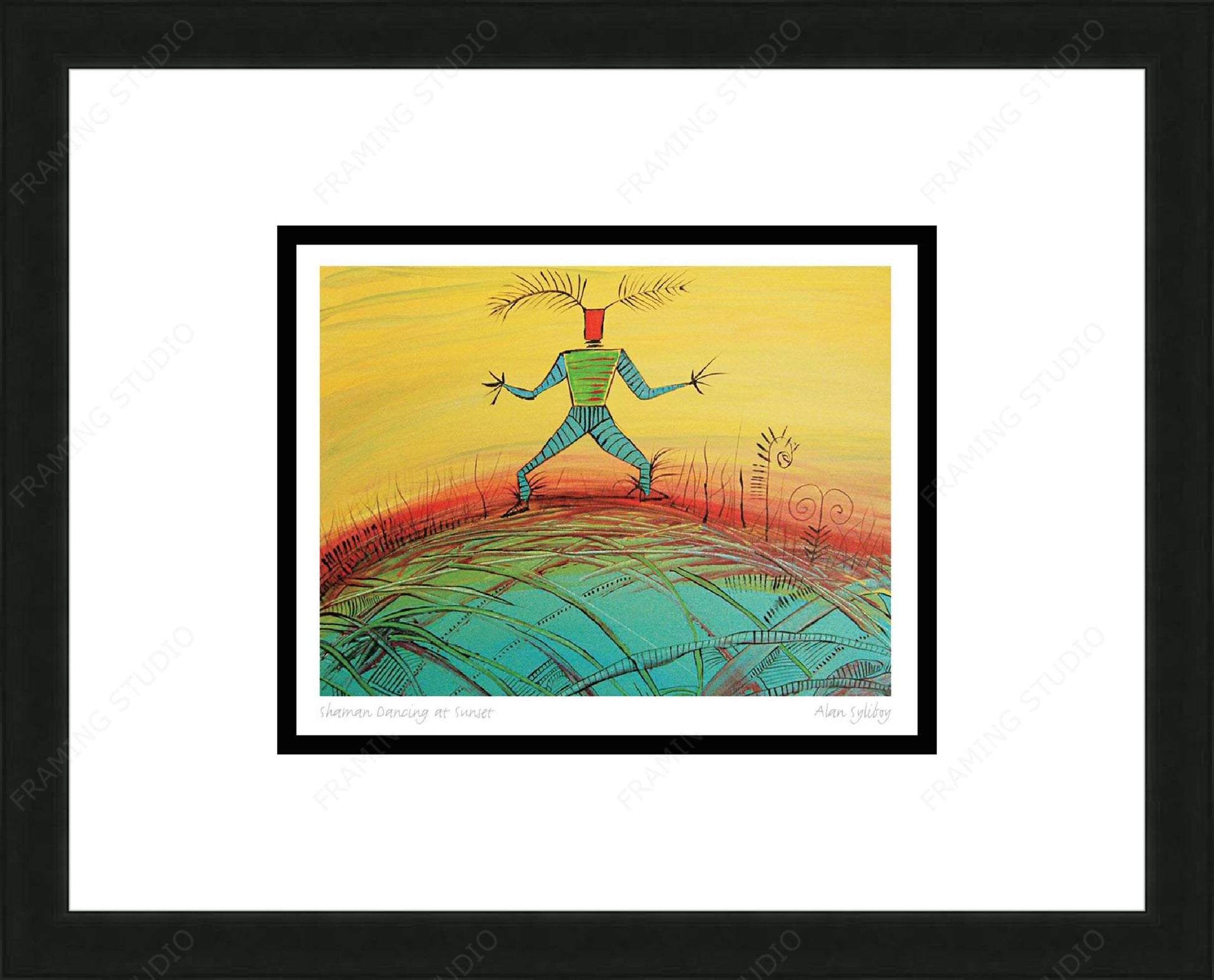 Shaman Dancing At Sunset by Alan Syliboy, Indigenous Art Card, Framed Art Card, Mi’kmaq Artist