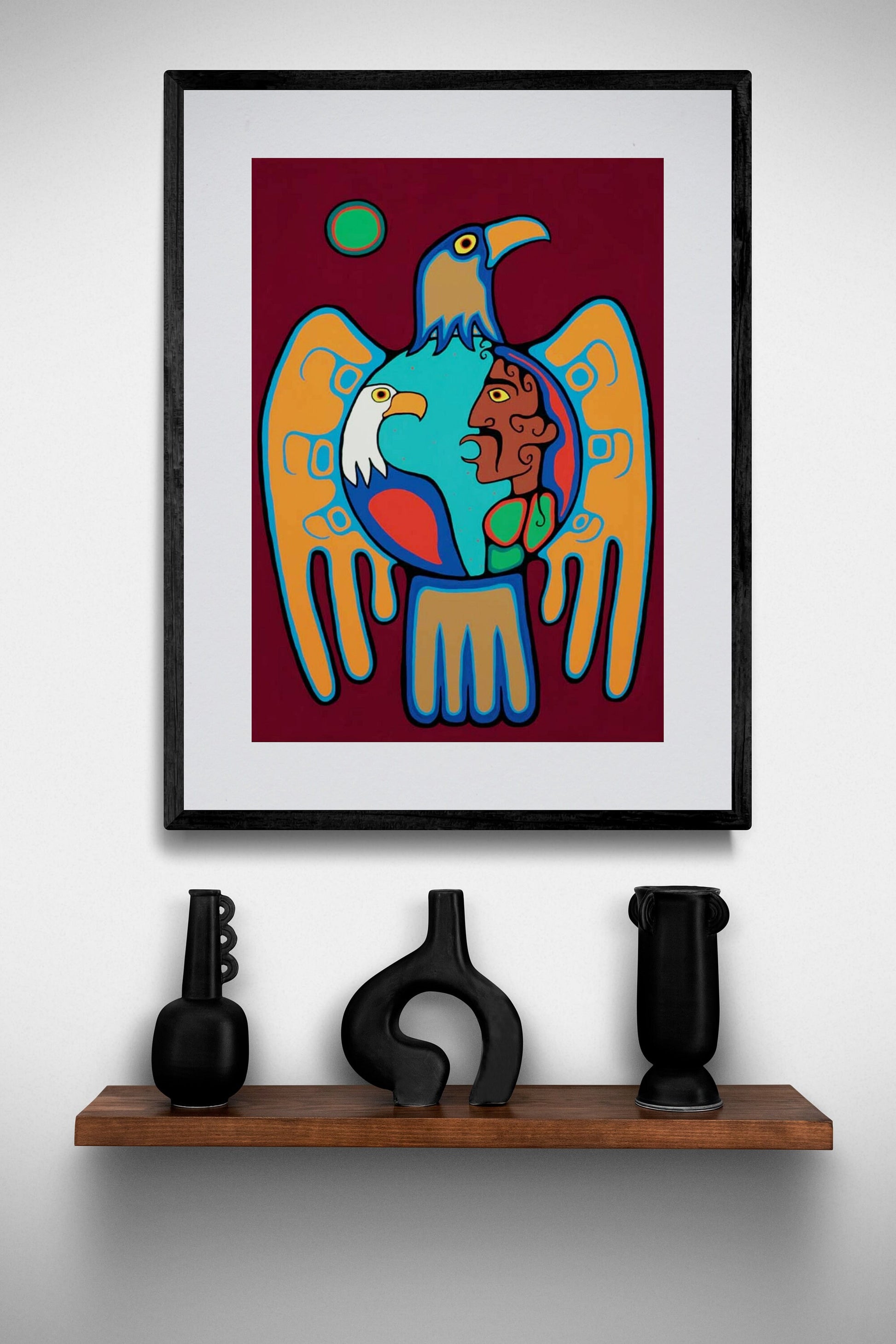 Shaman Talking to Eagle Spirit by Jim Oskineegish Indigenous Art Print, First Nations, Ahnisnabae Culture, Native American Indian Decor