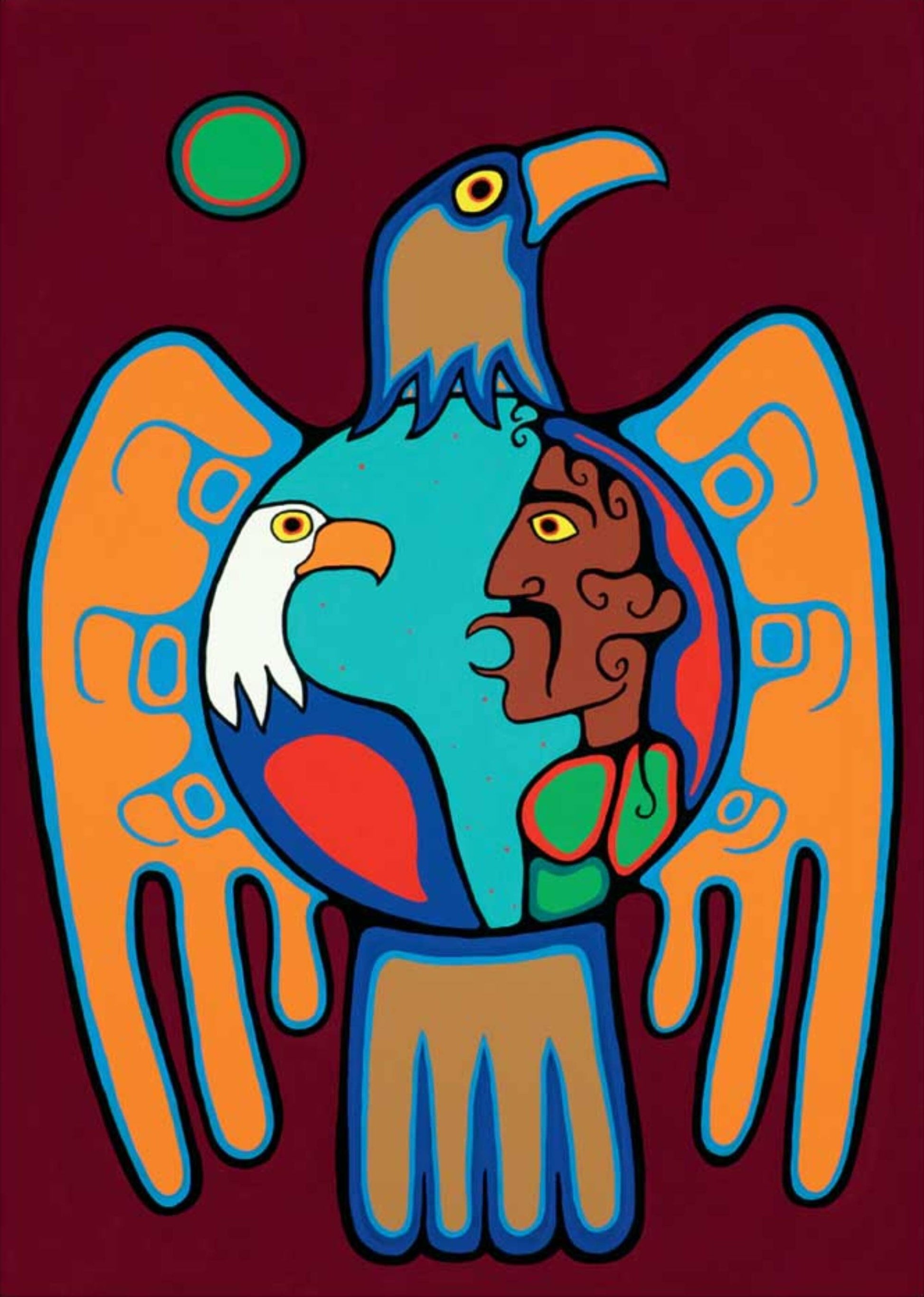 Jim Oskineegish is an Ojibwe artist who is a registered member of the Eabametoong First Nation which is located in northwestern Ontario, Canada. Jim paints in the Shamanistic Woodland Style using bold lines and bright colors. He loves to paint legends and stories of his people and hopes that his art can bridge a universal understanding of love, faith, and unity. “I want to promote positive Ahnisnabae culture to the world.”