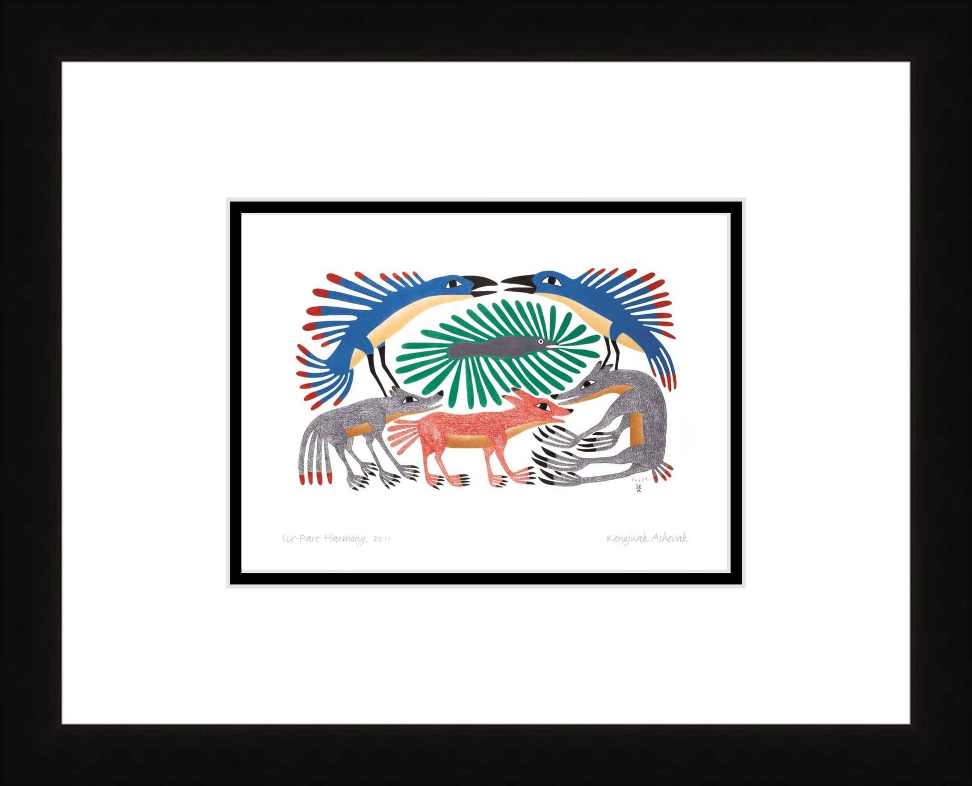 Six-Part Harmony, 2011 by Kenojuak Ashevak, Indigenous Inuit Art Card, Aboriginal Decor, Framed Art Card