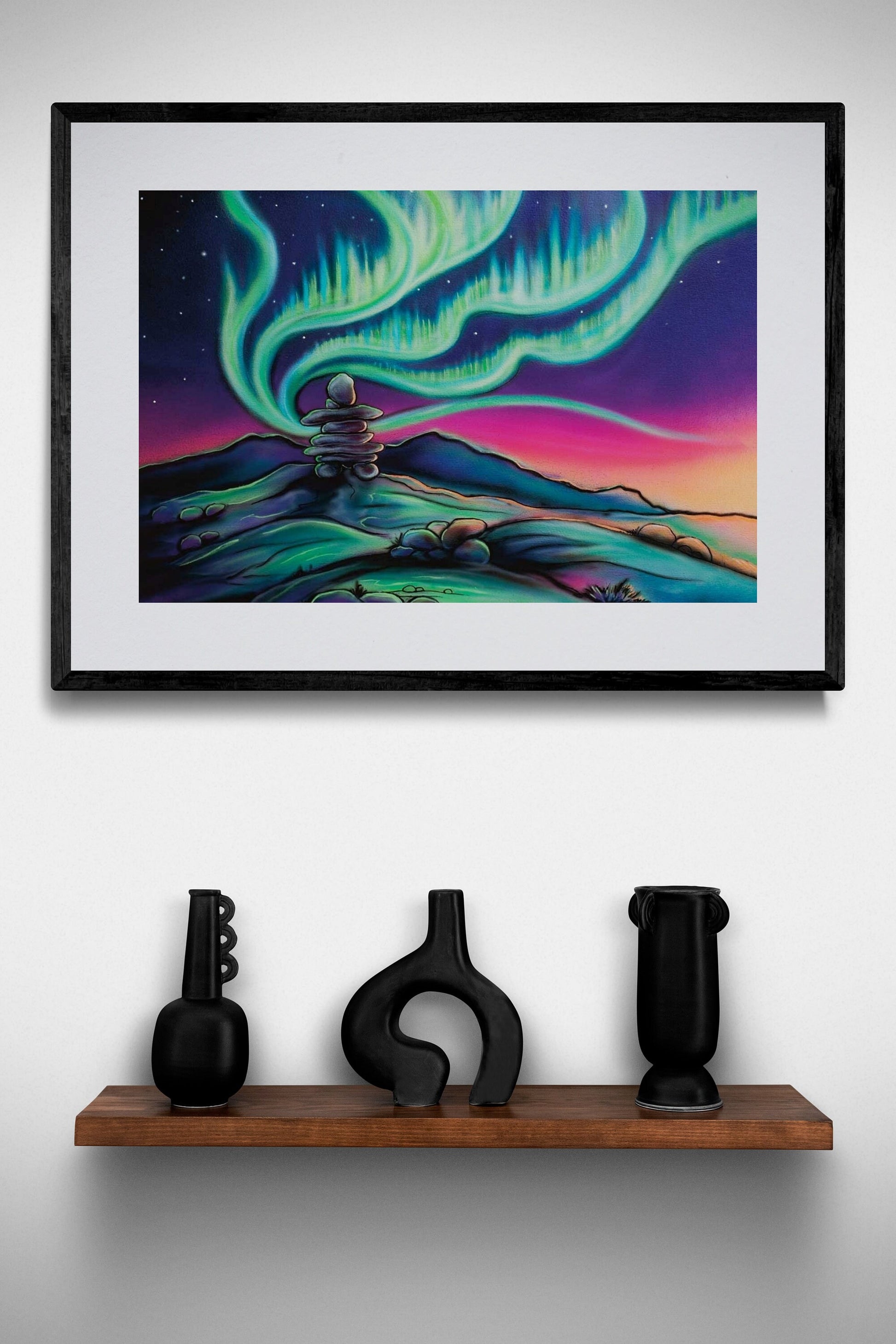 Sky Dance Friendly Skies By Amy Keller-Rempp Indigenous Art Print, First Nations, Native Americans Decor, Northern Lights, Aurora Borealis
