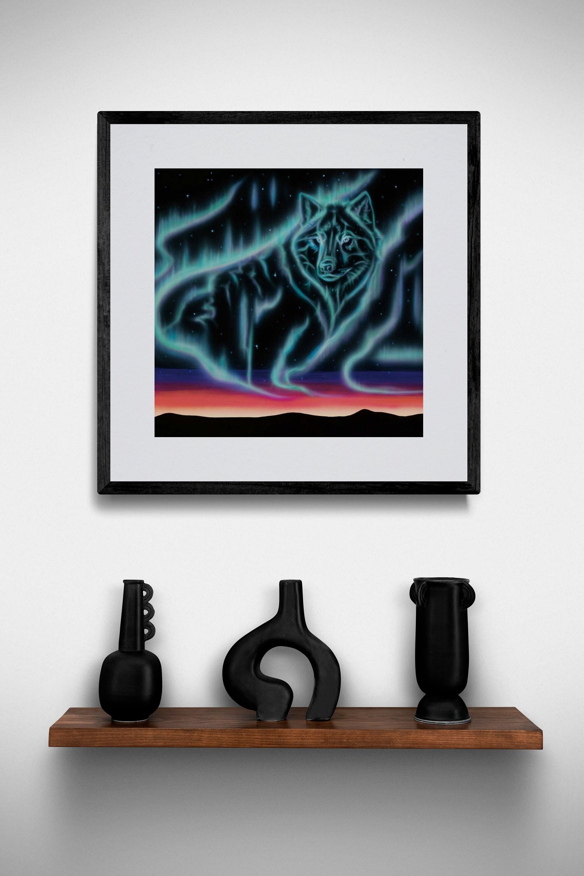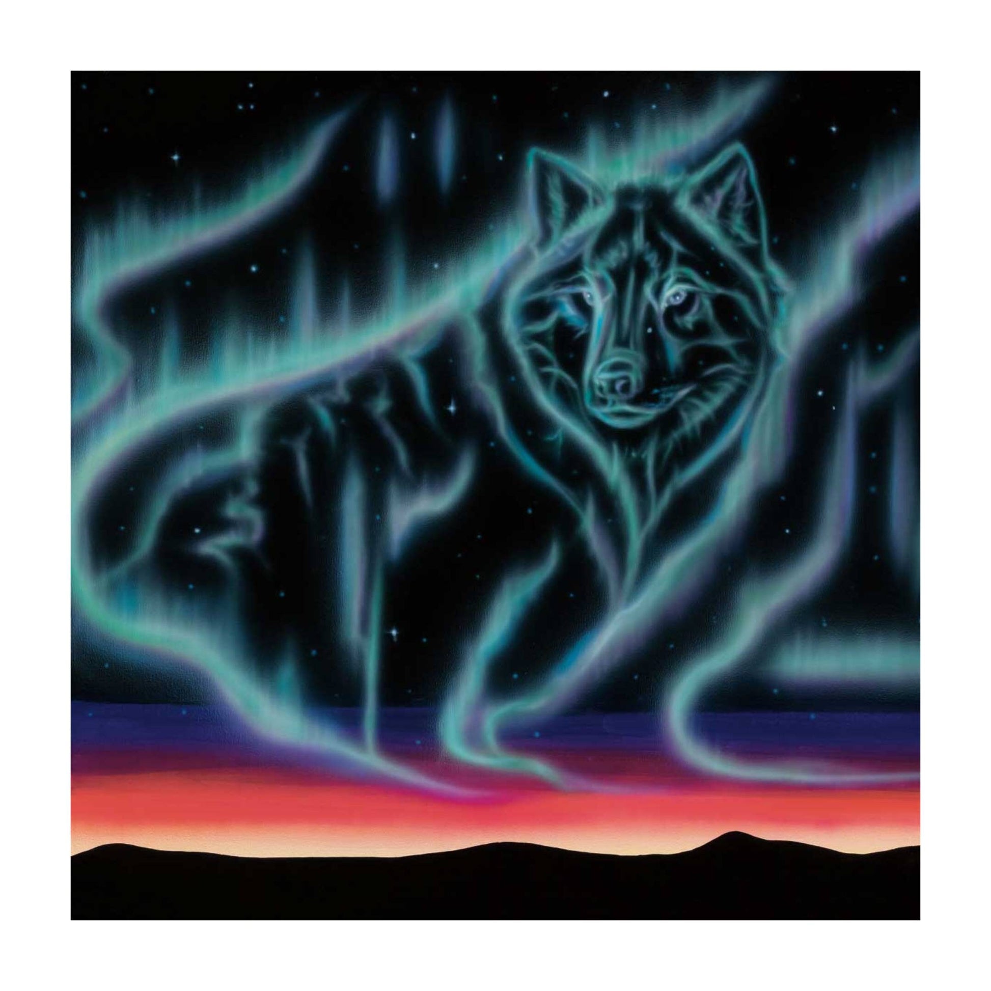 Sky Dance – Wolf By Amy Keller-Rempp Indigenous Art Print, First Nations, Native Americans, Northern Lights, Aurora Borealis