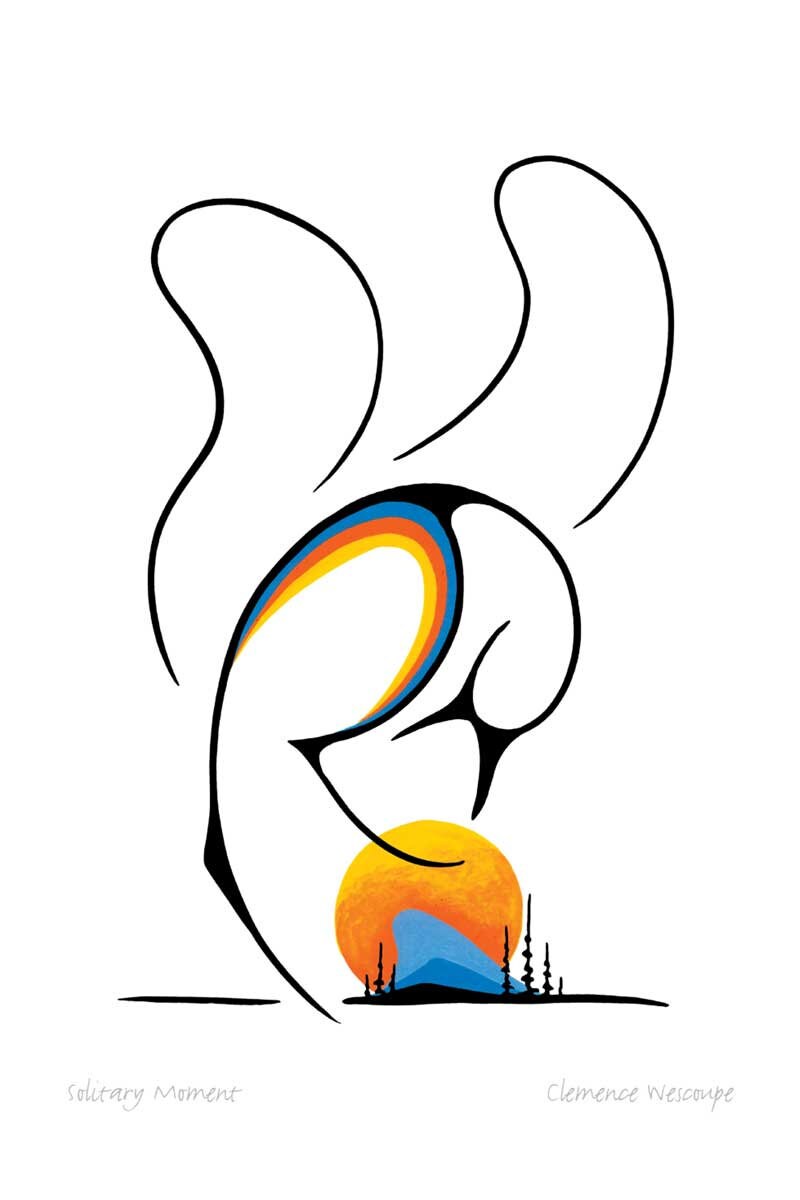 Clemence Wescoupe, Ojibwa, of Saulteaux background, was born in 1951 on the Long Plain Reserve of Southern Manitoba. His native name is “Oo-za-biness” which means “Brown Partridge”. Wescoupe’s work began following the early Woodland and Prairie Aboriginal tradition of such artists as Daphne Odjig and Jackson Beardy and in 1976 started his own graceful, flowing lines and stylized forms, emerging somewhat at the same time Benjamin Chee Chee’s work was introduced into the Winnipeg area. Clemence emerged in the mid-seventies when Robert Checkwitch of Great Grasslands Graphics first saw his work and began publishing Wescoupe’s silkscreen prints.