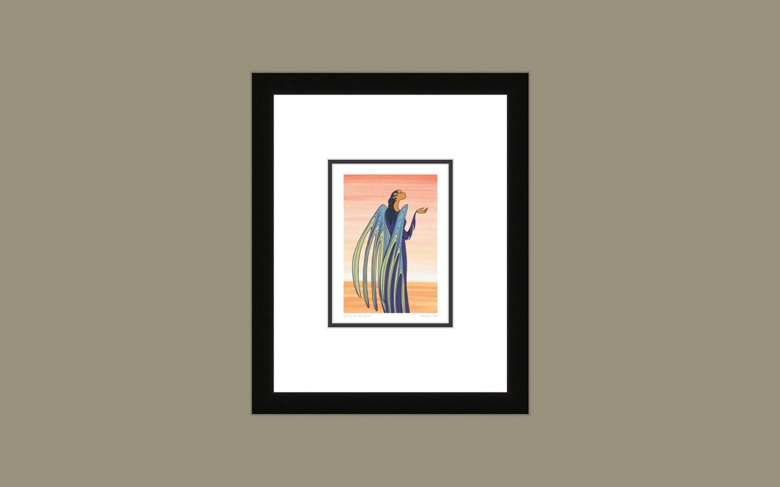 Framed Art Card - Framed Outside Finished Size: 16 X 13, Double Mat, 1.25” Black Wood Frame, Finished Backing with Wire Hanger and Artist's bio on the back.