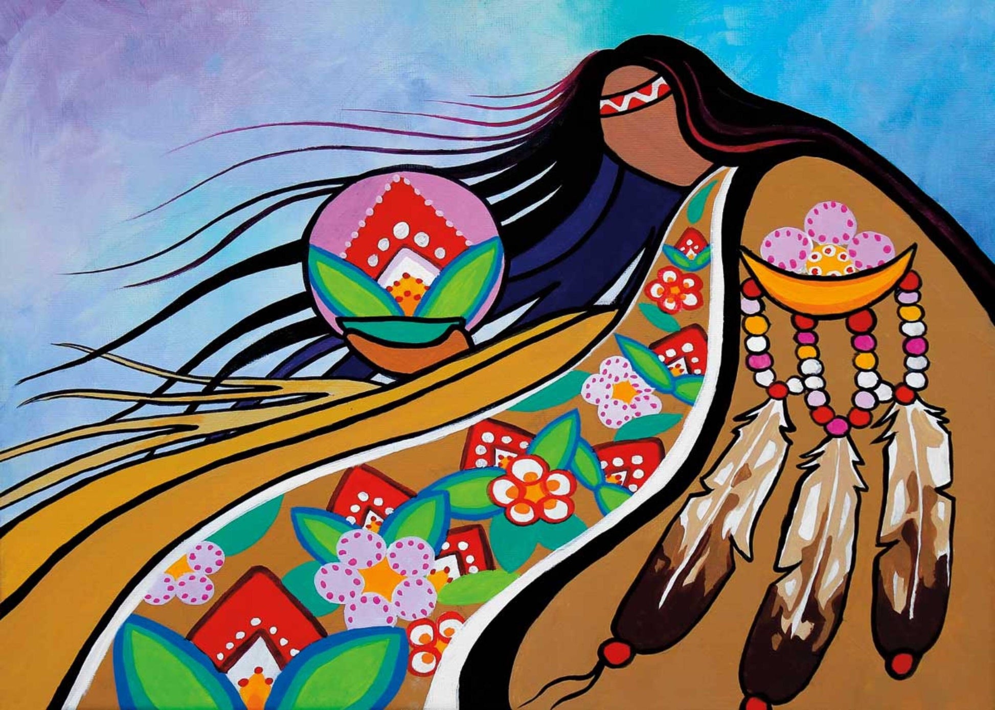 Pamela Cailloux was born in Chibougamau Québec. She is of Métis decent consisting of Huron and Algonquin heritage. Her artwork is heavily influenced by the teachings of the medicine wheel consisting of balance, seasons, elements and harmony. Mother earth is often represented in her works as an energy and spirit that is determined to heal and restore natural order. Pamela has been drawing all her life and the style we see today, began to take shape around 1995.