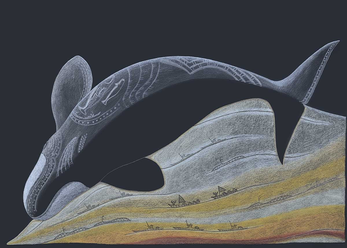 “I am a hunter and I know the land and animals of the north. I am particularly inspired by the bowhead whale, because nobody really knows much about them. My inspiration to be an artist comes from my aunt, Kenojuak Ashevak, because she is the oldest and the best.”