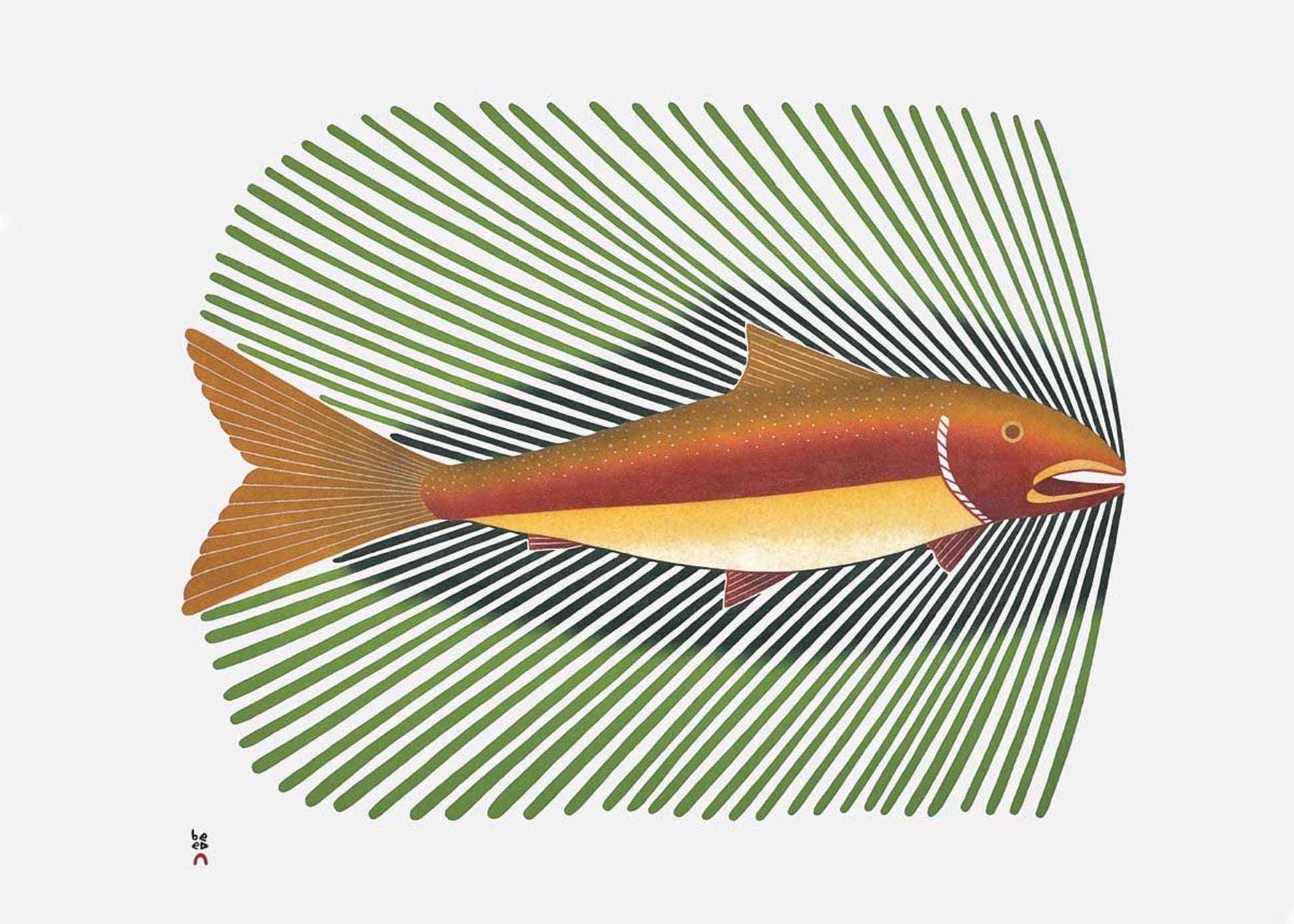 Summer Char (Stonecut & Stencil) by Kenojuak Ashevak, Indigenous Inuit Art Card, Aboriginal Decor, Framed Art Card