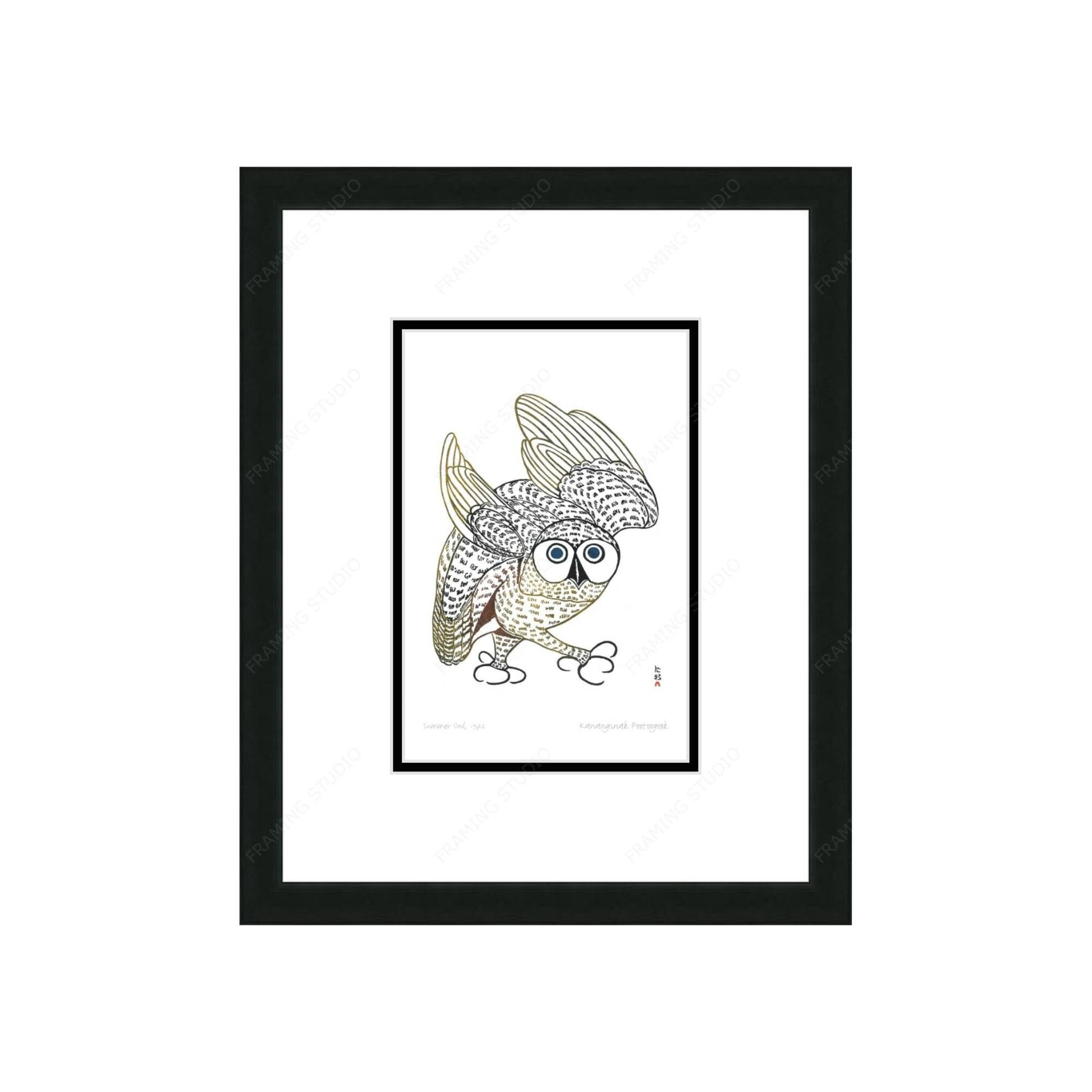Summer Owl, 1972 by Kananginak Pootoogook, Indigenous Art Card, Inuit Framed Art Card