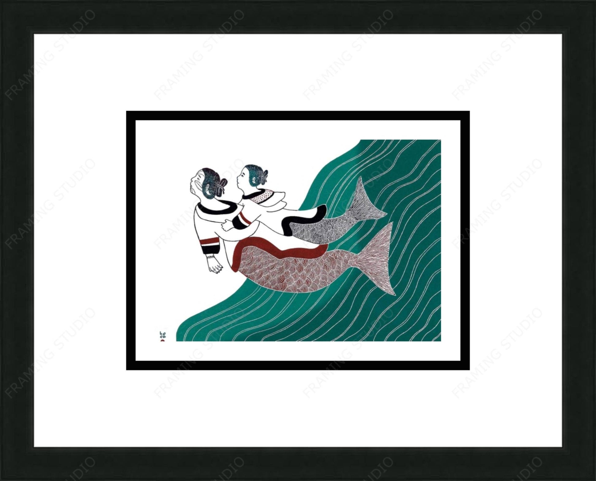 Surfacing by Ningiukulu Teevee, Indigenous Inuit Art Card, Aboriginal Decor, Framed Art Card