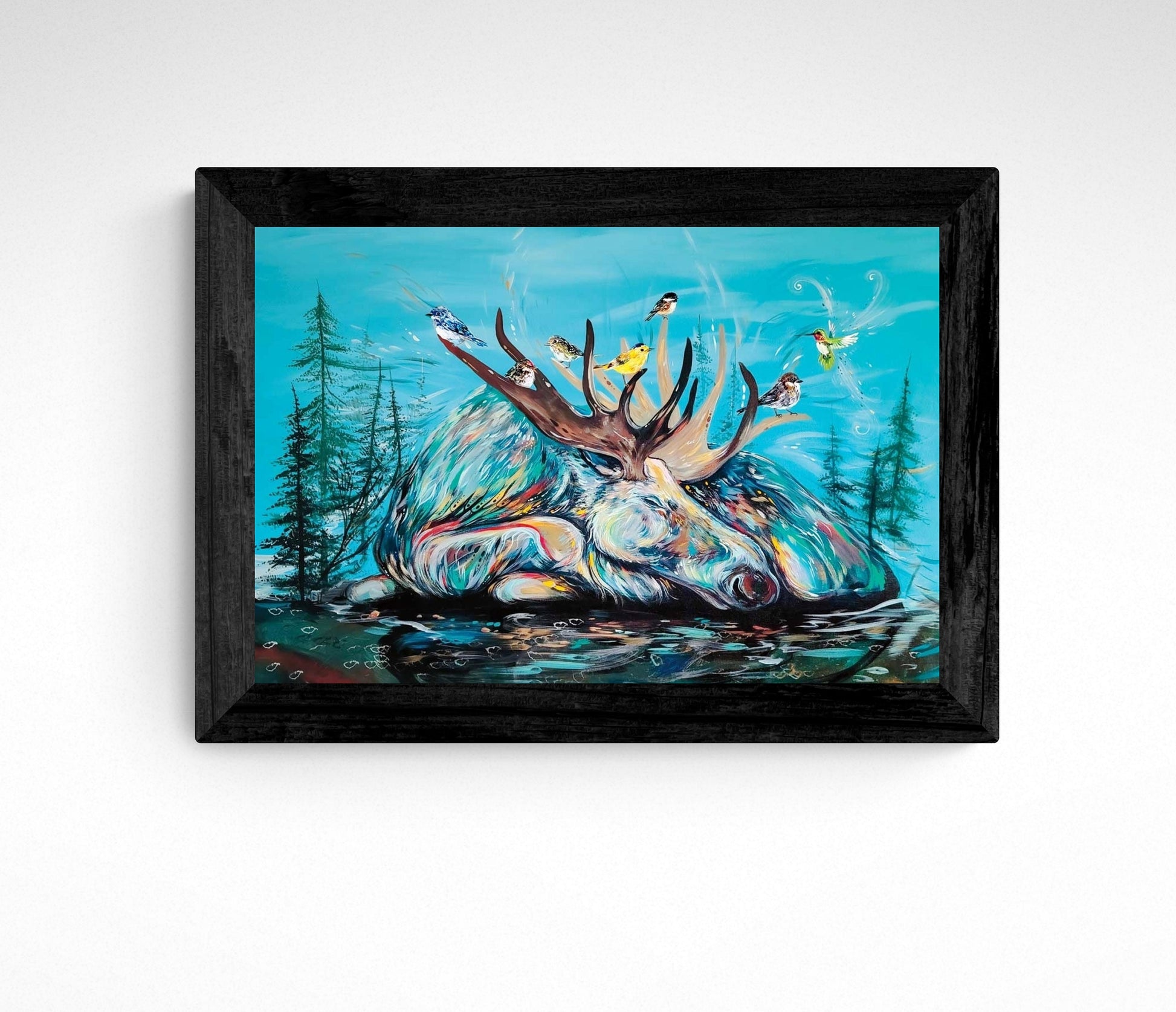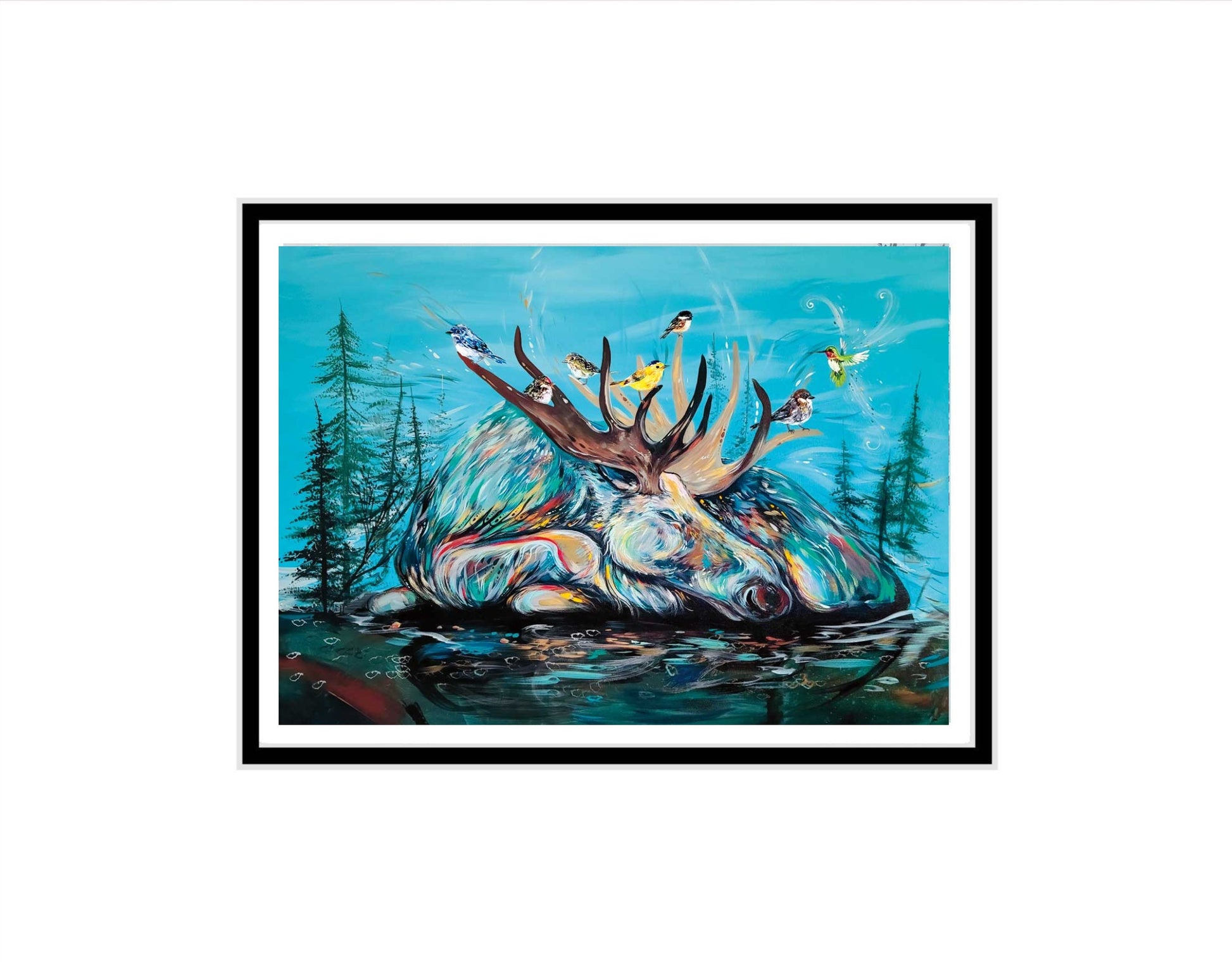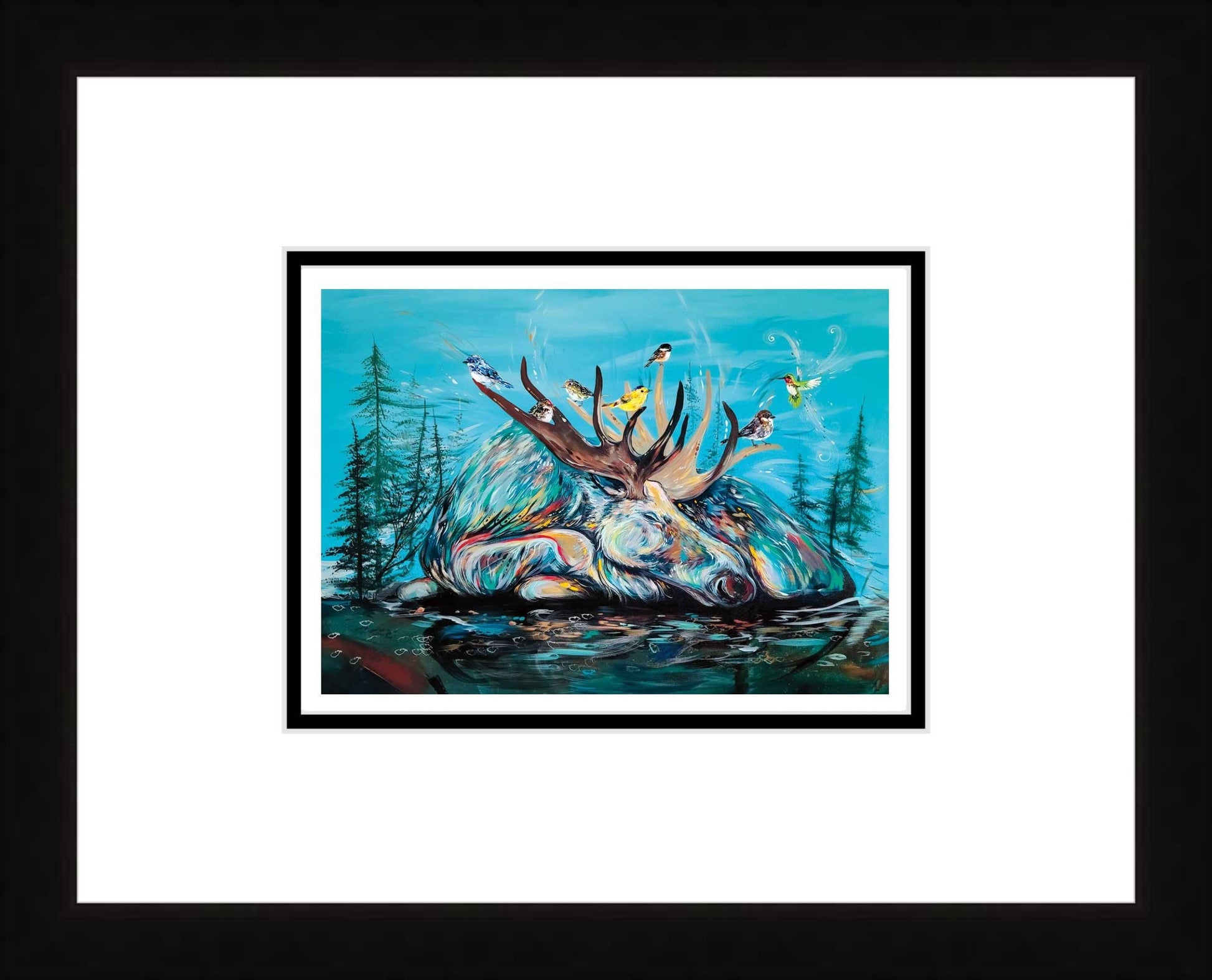Framed Art Card - Outside Finished Size: 13 X 16, Double Mat, 1.25” Black Wood Frame, Finished Backing with Wire Hanger and Artist's bio on the back.