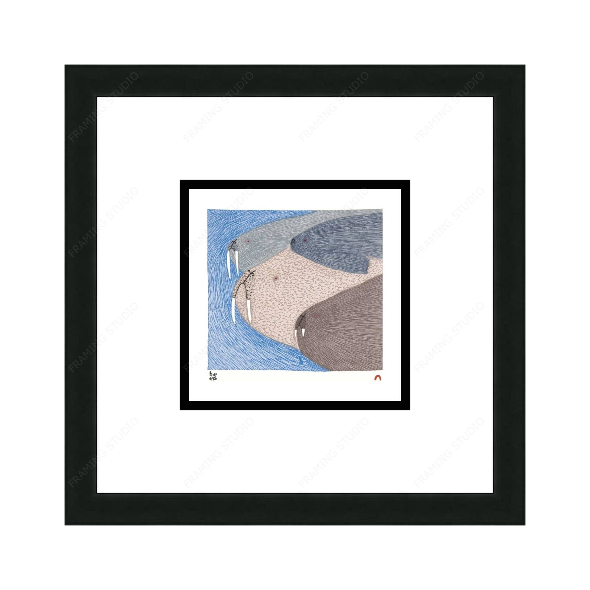 Swimming Walrus by Ningiukulu Teevee,, Indigenous Art Card, Inuit Framed Art Card